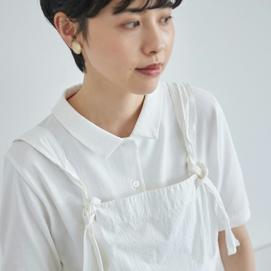 そんな時でも自信をもって着られるように、Tシャツと同じ素材できれい見えするトップスをつくりました。