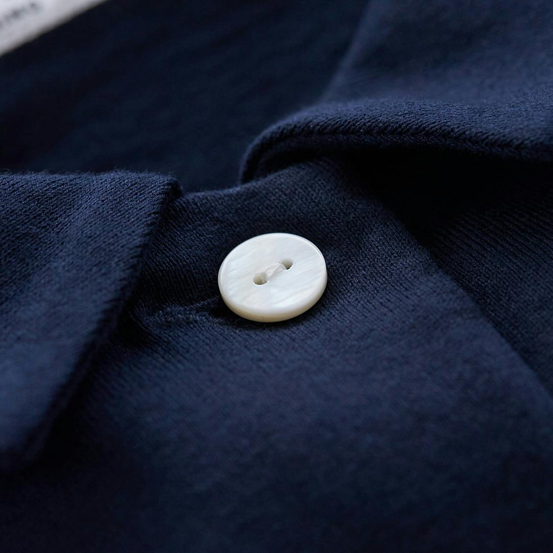 白ボタンがアクセントの「ネイビー」は、ホワイトのボトムスと合わせれば、スッキリ上品な夏コーデに。