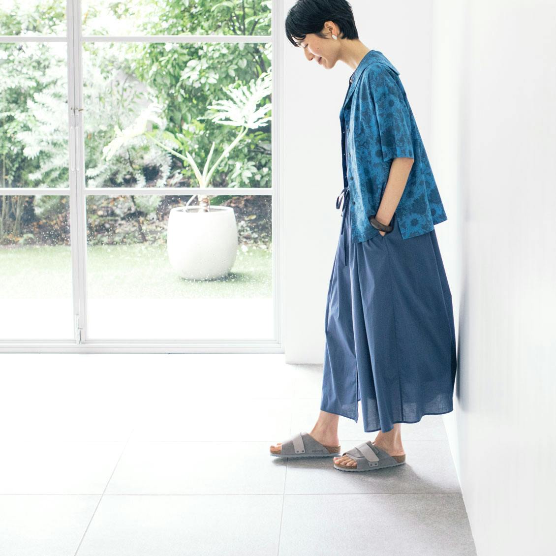 今回は2名のスタッフの家時間に、着替えた瞬間に夏休みの始まりを感じられるようなイエローとブルーを着てみてもらうことに。ぜひお買い物の参考にしてみてくださいね。