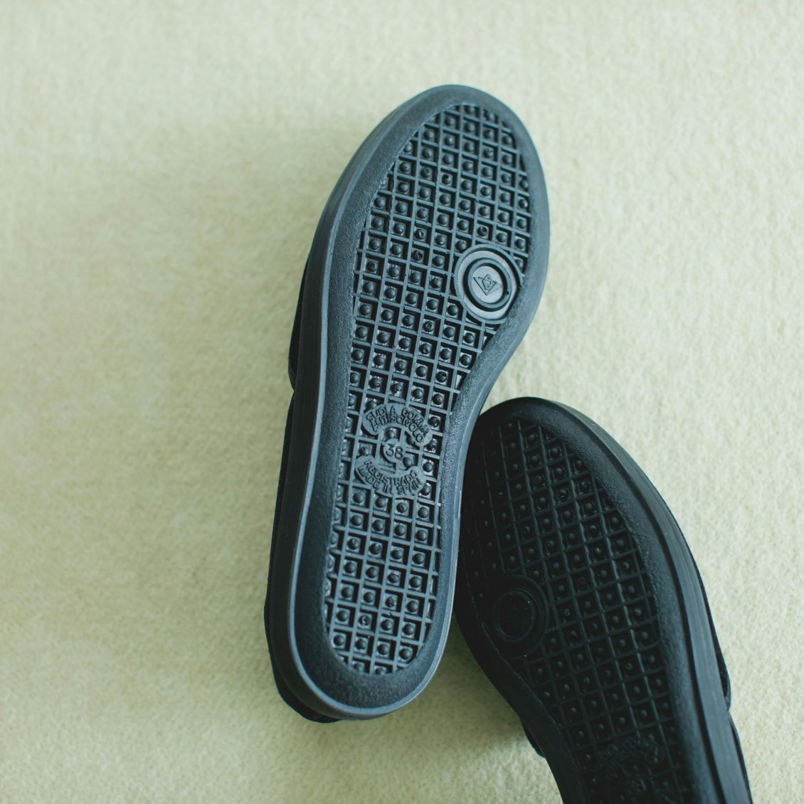 全体的にすっきりとしたフォルムなので、足が細く見え、上履きのようになりにくいんです。
