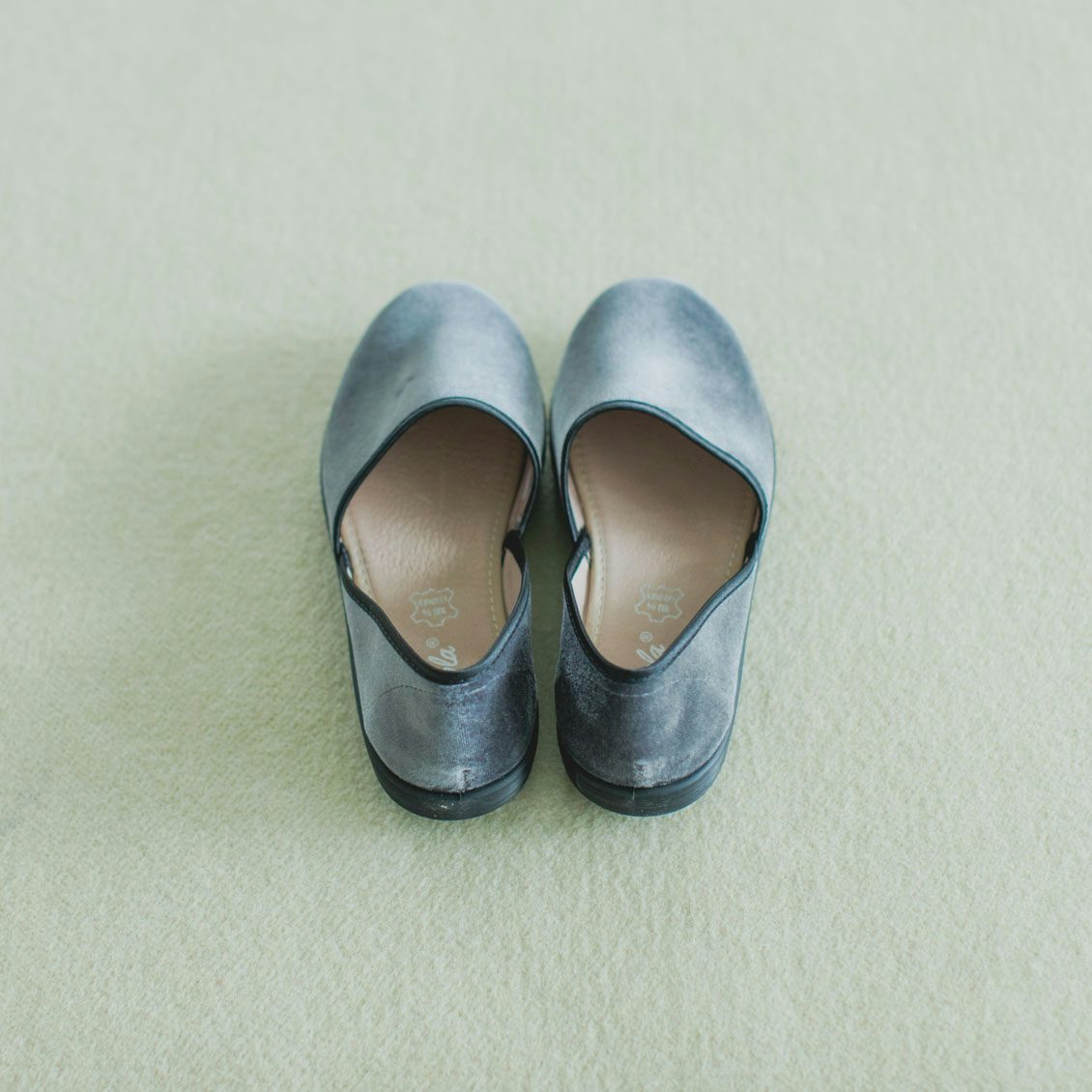 気軽にさっとはけるのに、秋らしいベロア素材とすっきりフォルムで、ちゃんと大人っぽく見えるのがうれしいシューズです。
