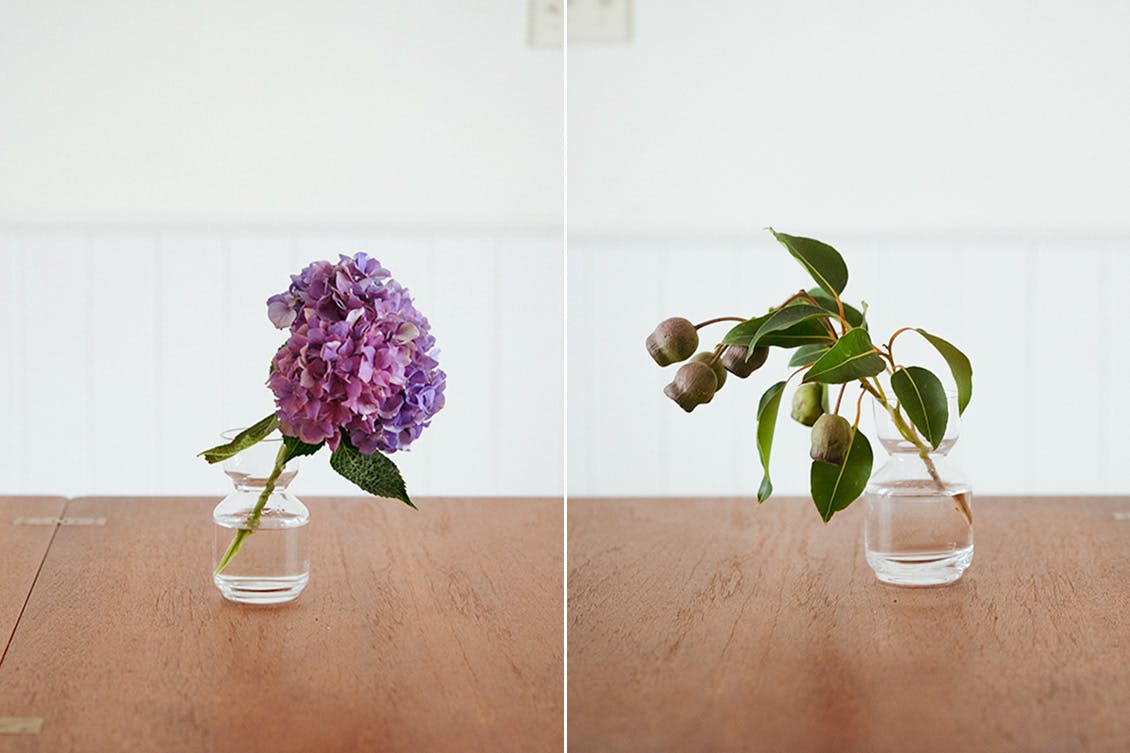 まずはテーブルの端やキッチンの作業台の隅にちょこんと置いて。ふとした瞬間にお花が目に入る幸せを感じていただけたらと思います。