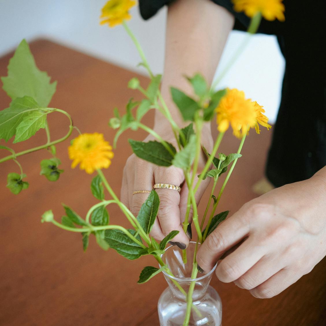 「花を飾るようになったのは、20代で1人暮らしをはじめたときから。毎週金曜日にお花を1本買ってきて、ガラスのコップにさして楽しんでいたんです。
