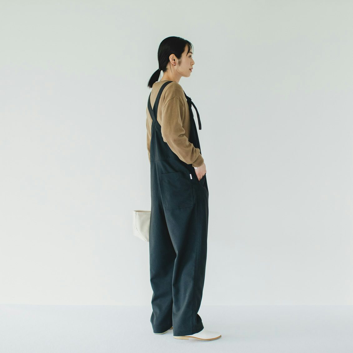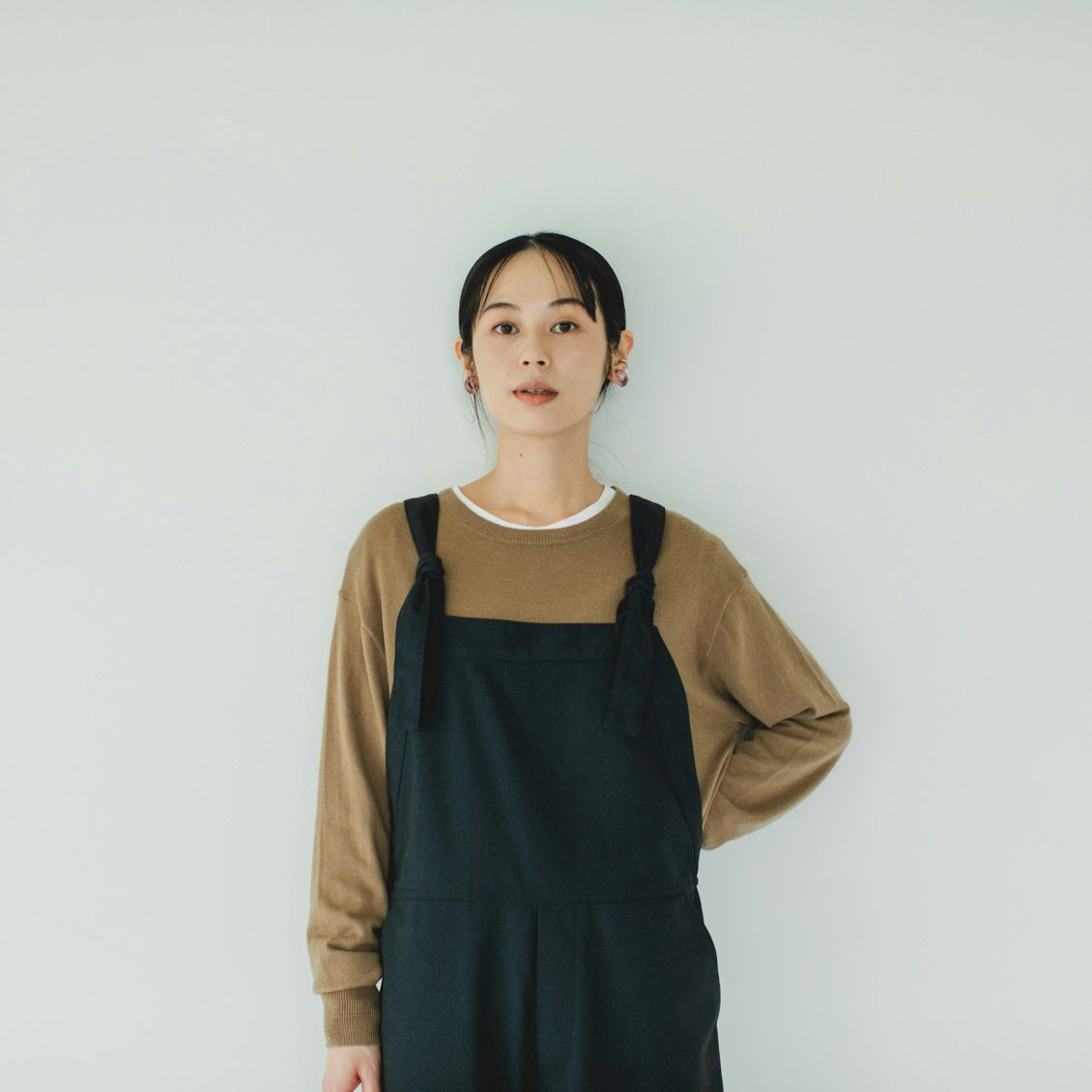 肩紐は、平たくやや太めのつくり。そのぶん肩への負担が少なく、サロペット自体も軽やかに感じられます。