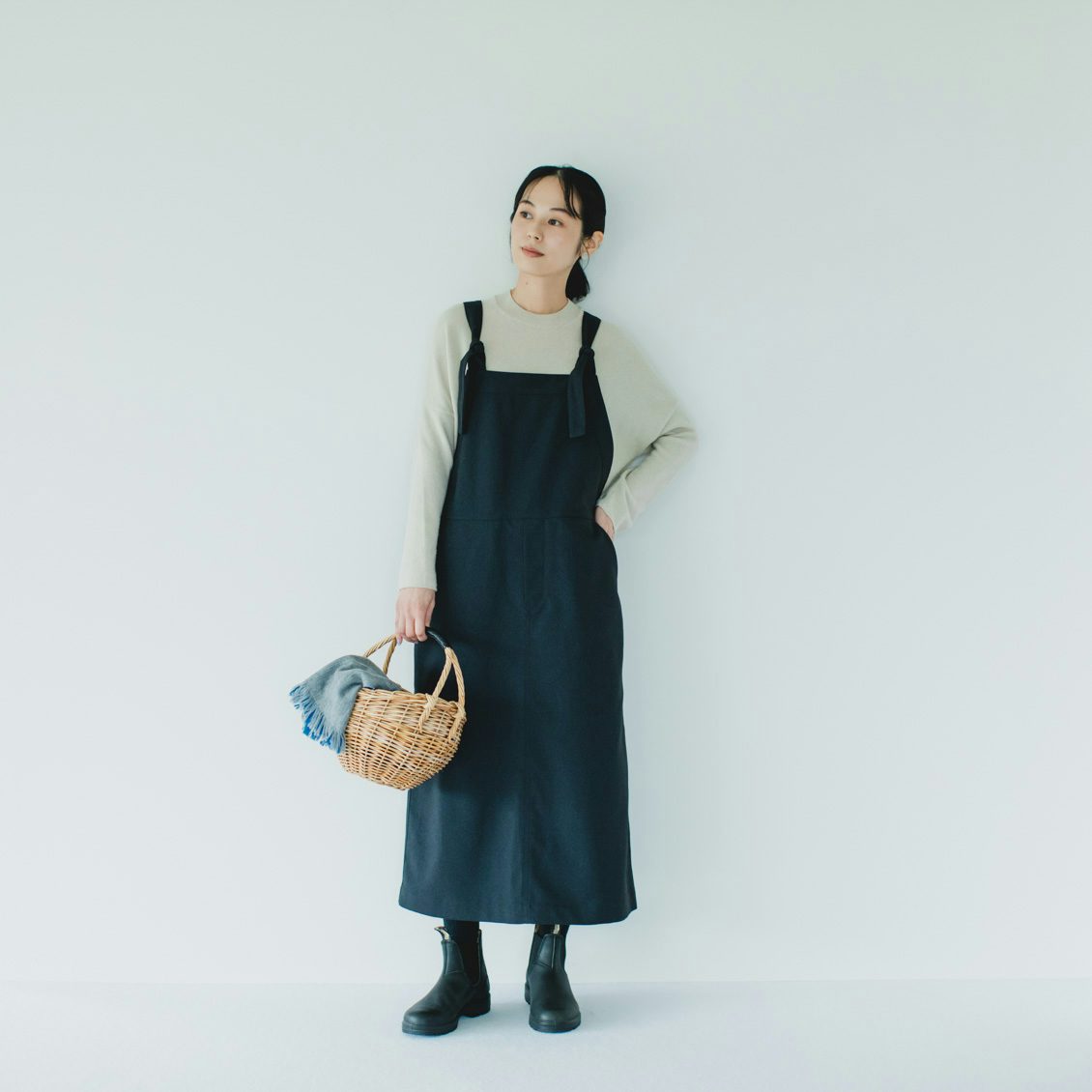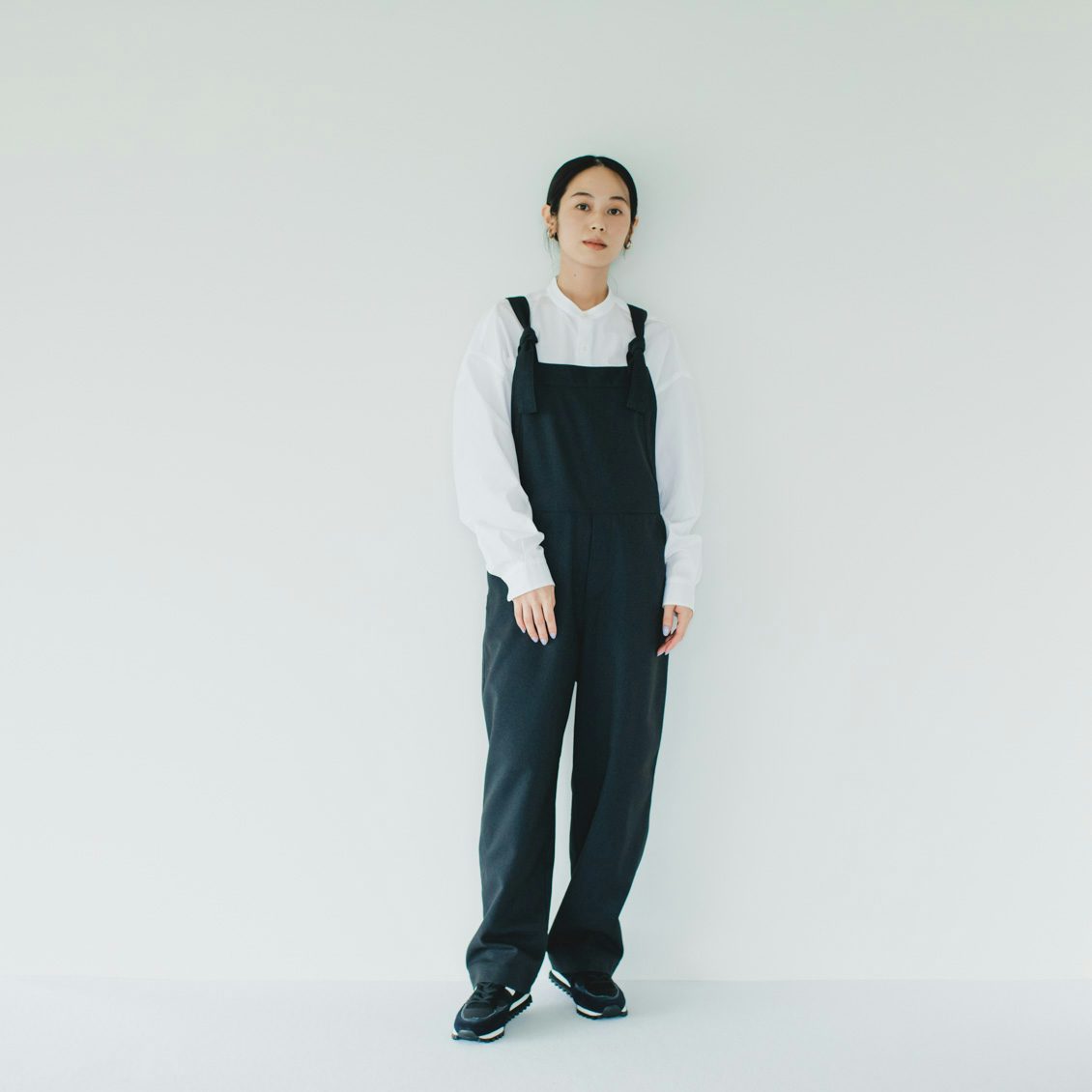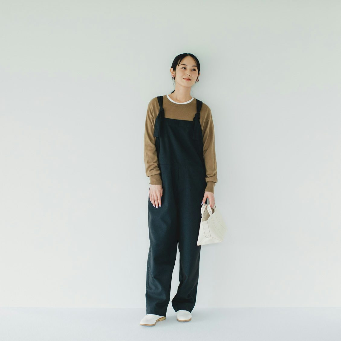このサロペットなら、カジュアルトップスでも、シックな印象はちゃんとキープ。