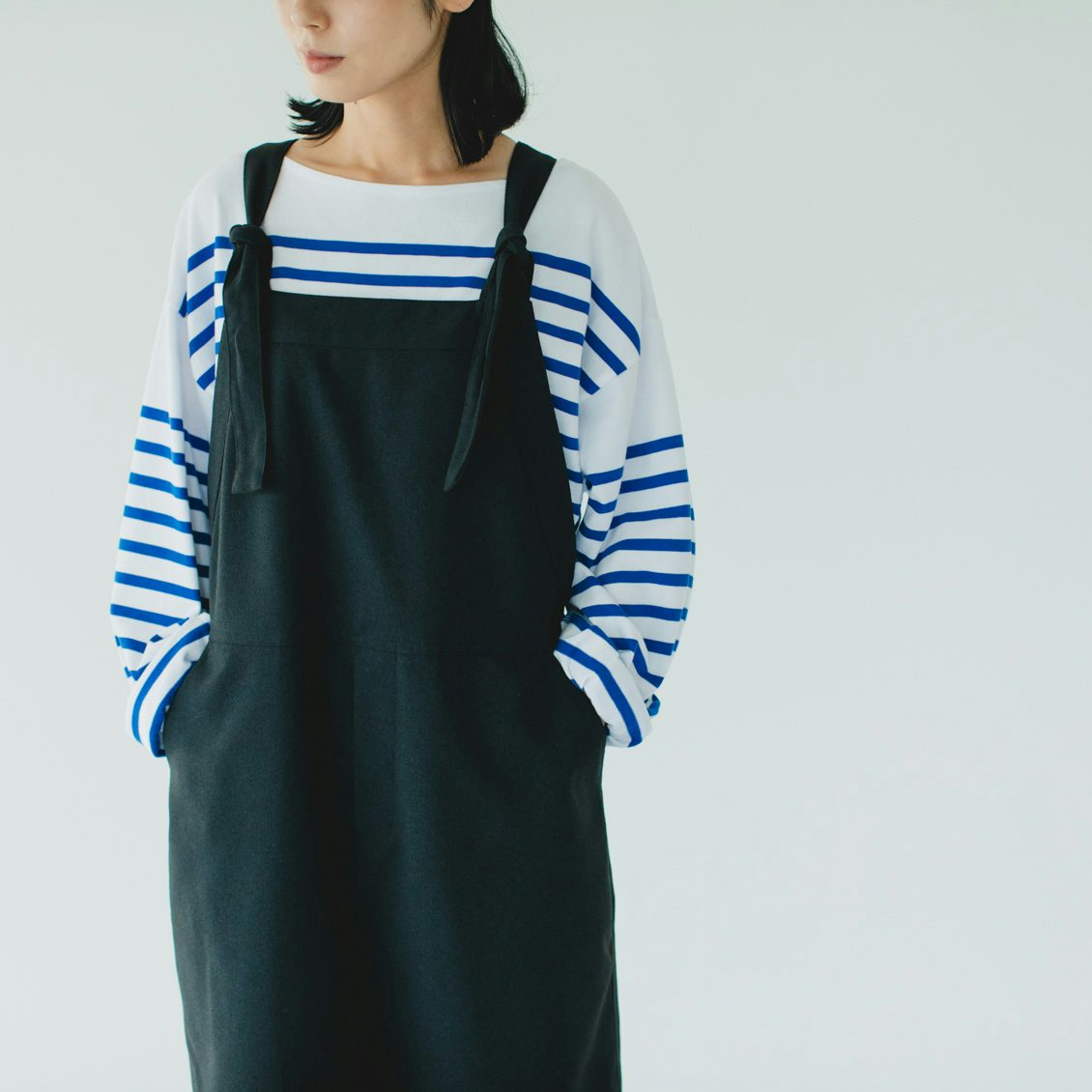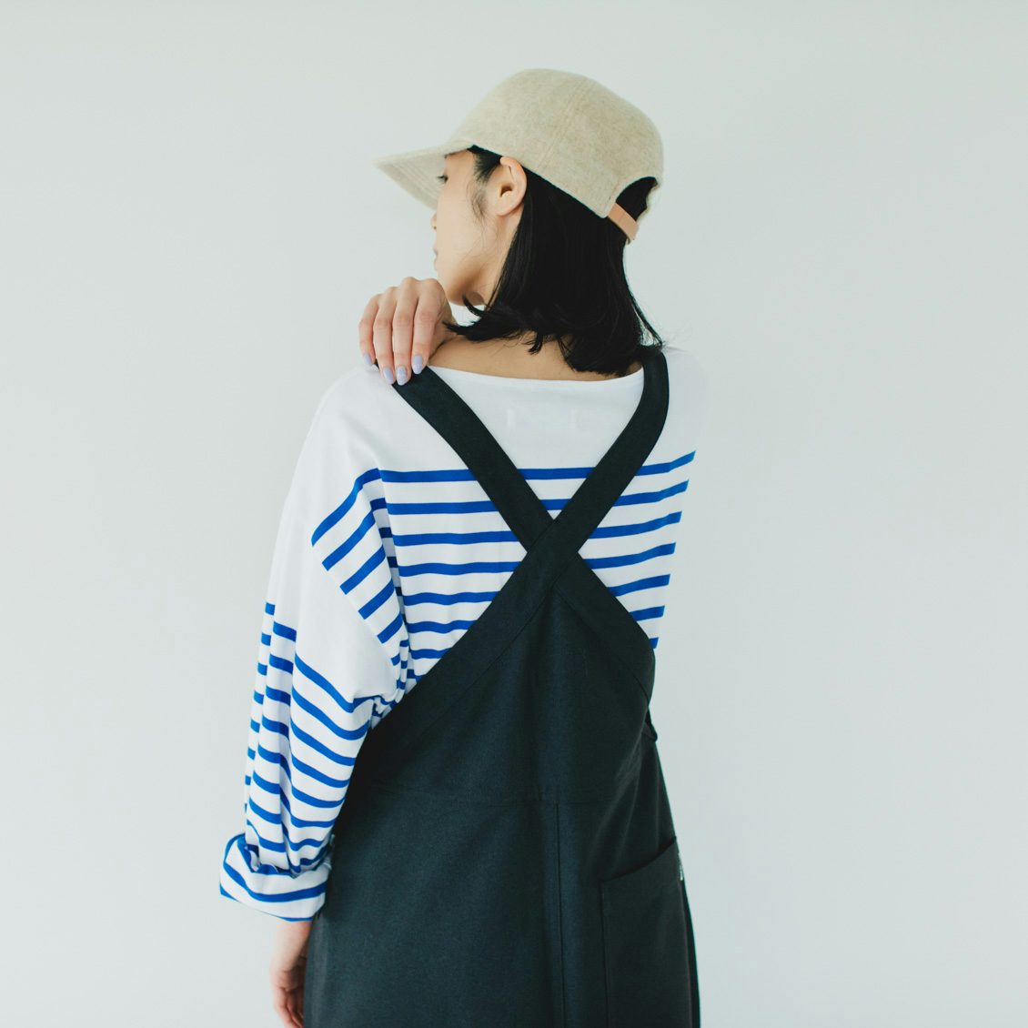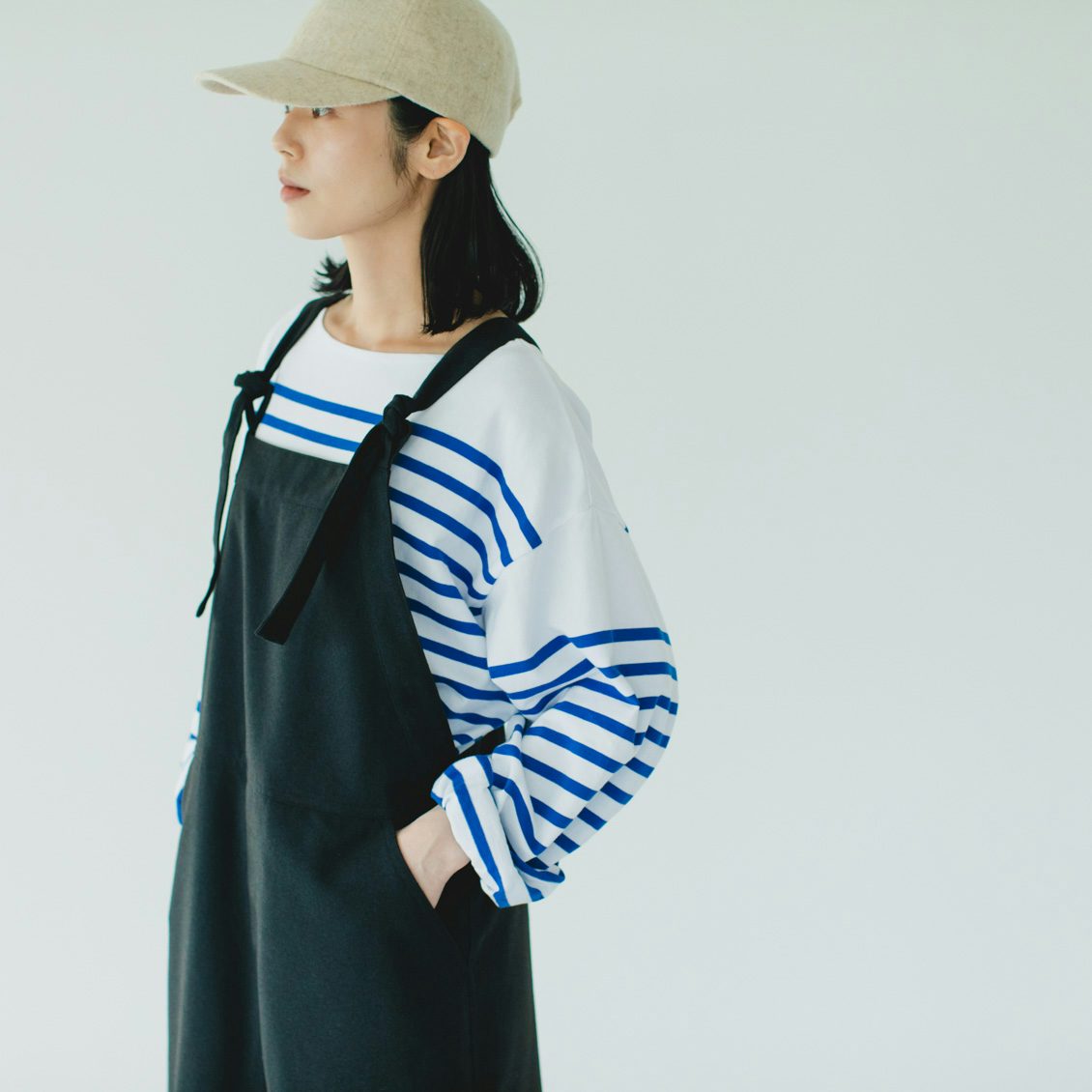 肩紐は、平たくやや太めのつくり。そのぶん肩への負担が少なく、サロペット自体も軽やかに感じられます。