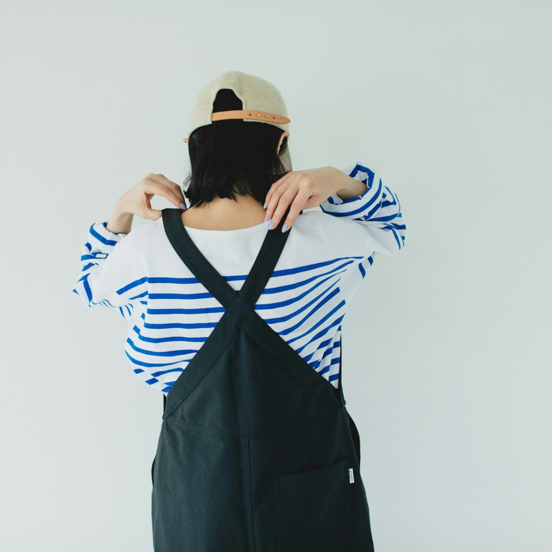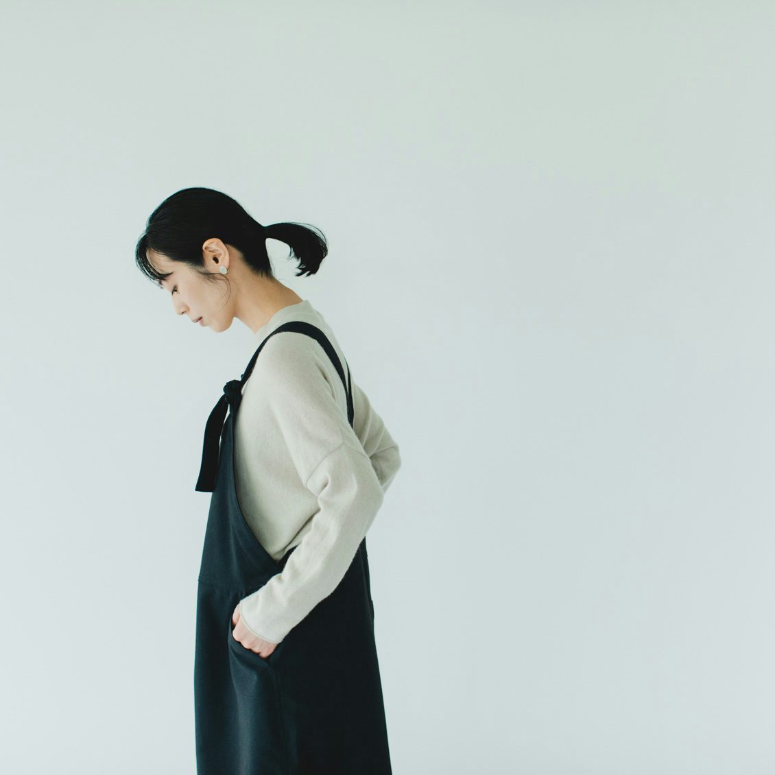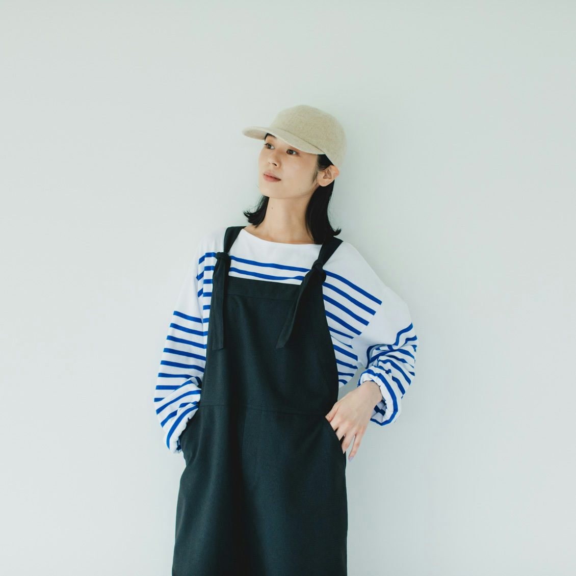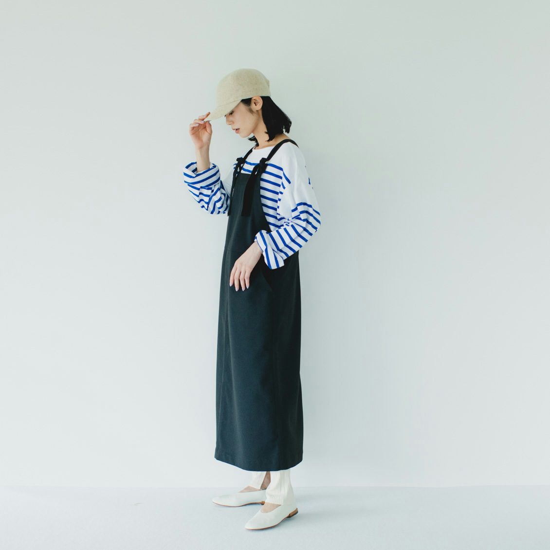 肩紐は、平たくやや太めのつくり。そのぶん肩への負担が少なく、サロペット自体も軽やかに感じられます。