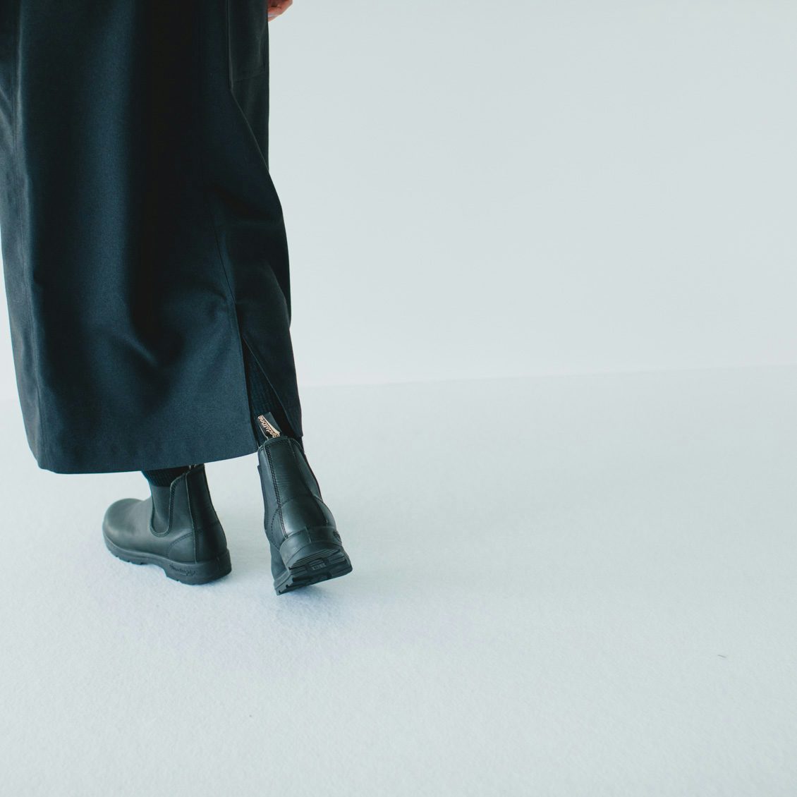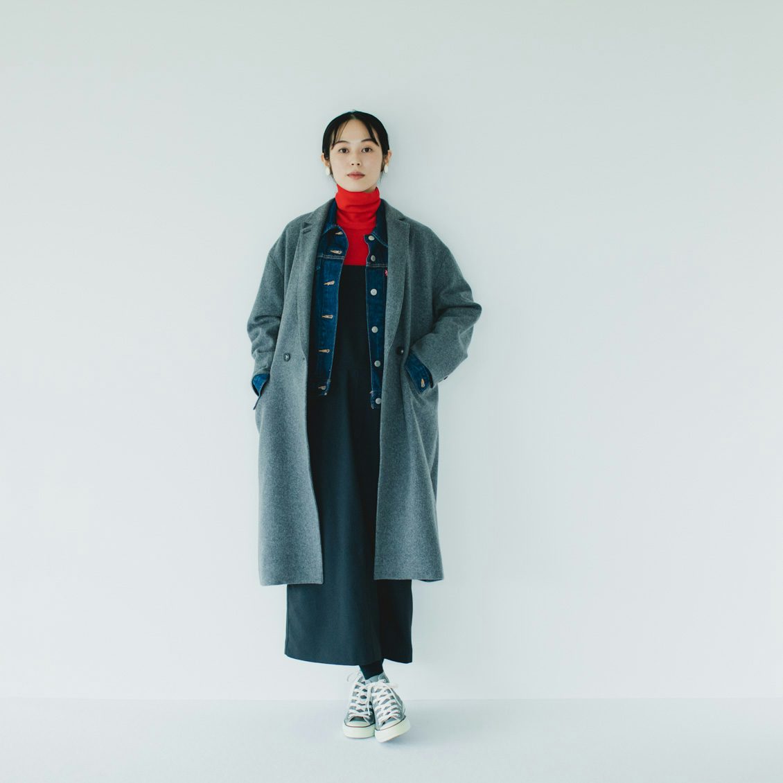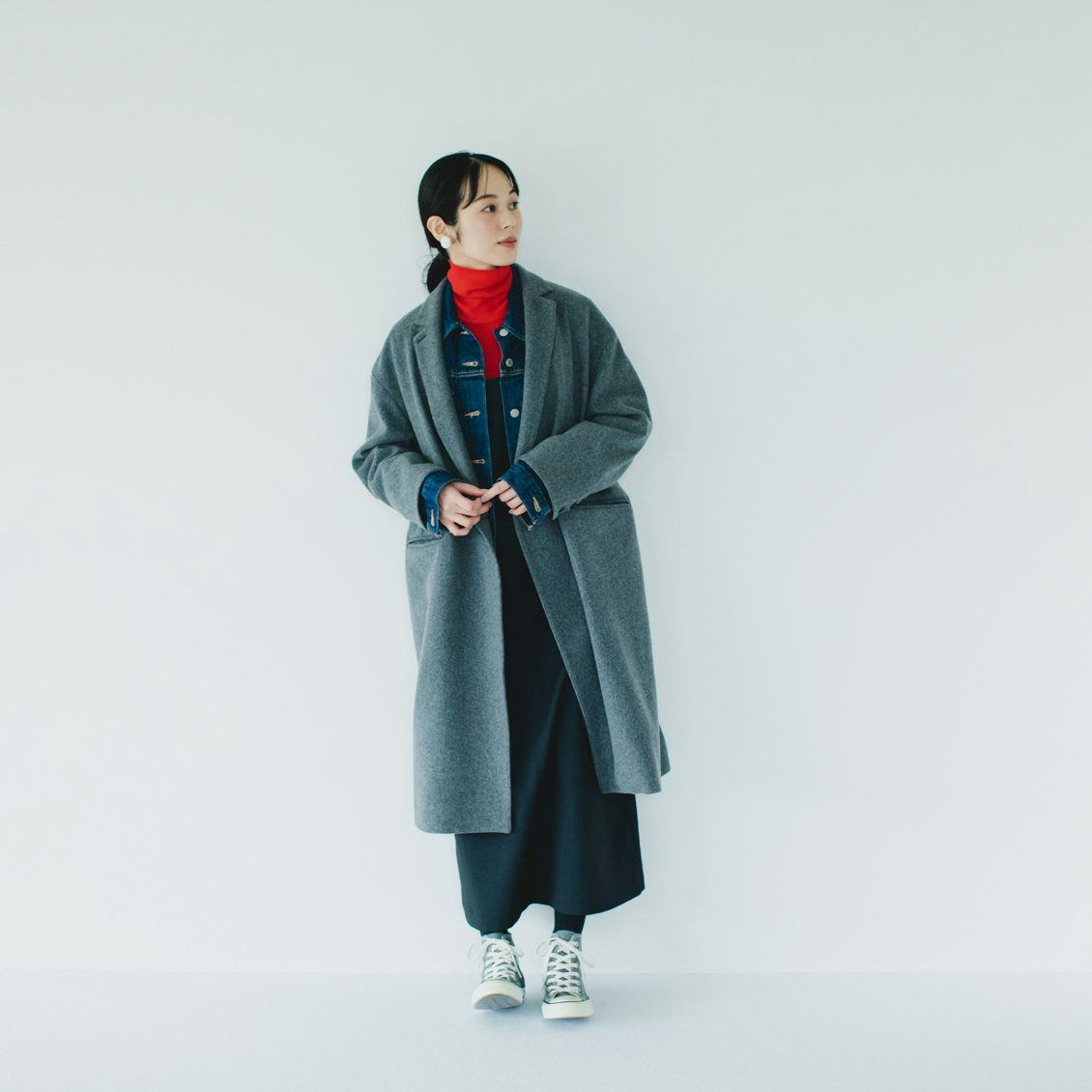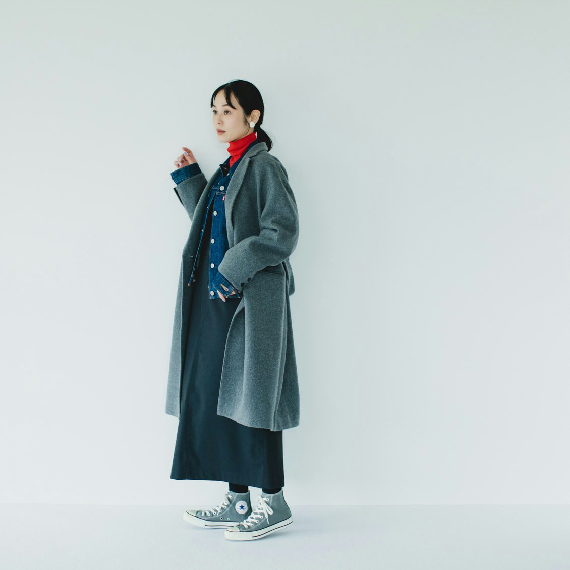長い丈のコートを上から羽織っても、相性バッチリ。着こなしに悩まない形です。