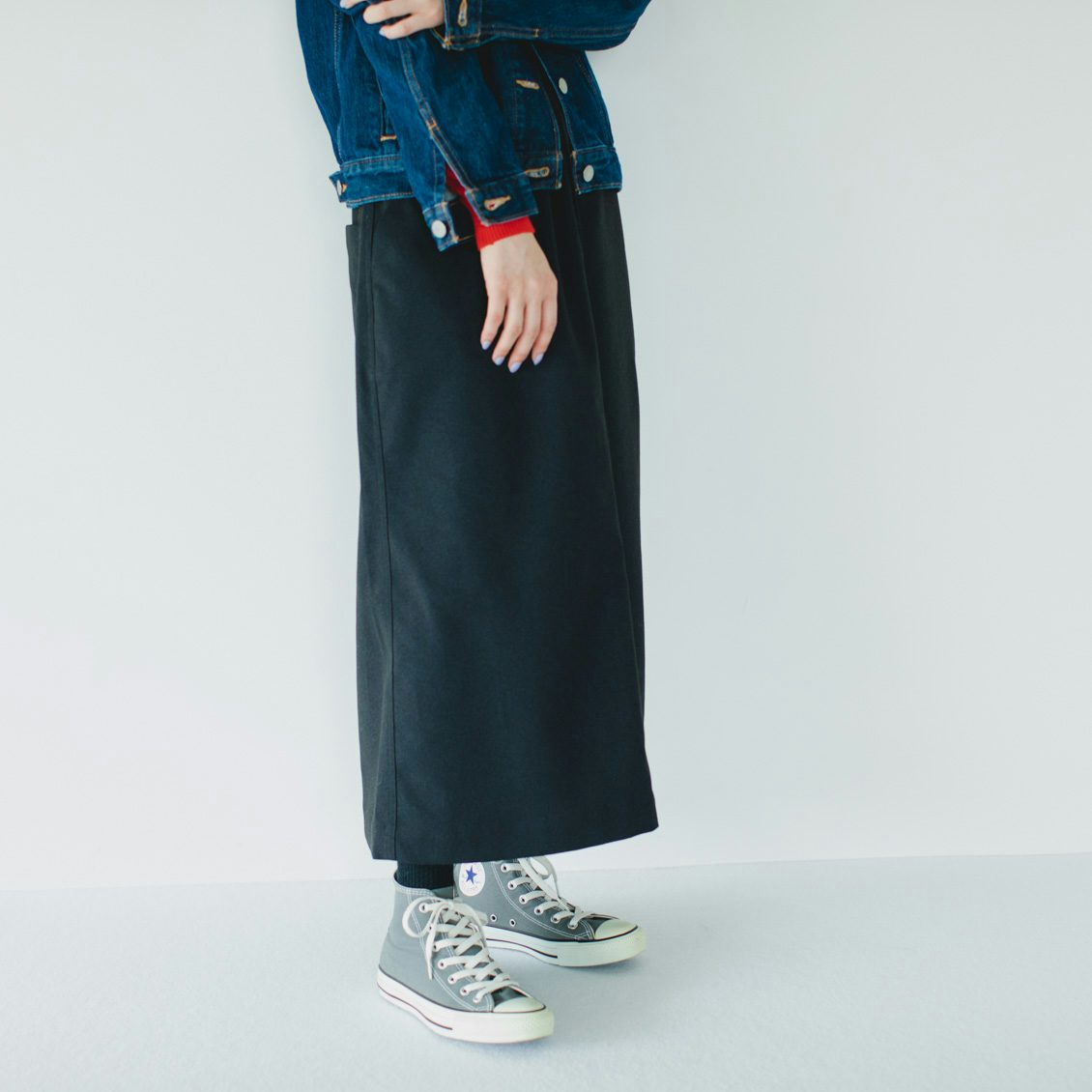 身体のラインを拾わず、かといって広がりすぎない絶妙なストレートシルエットは、このスカート部分だけでも買いたい!と思わせるほど。