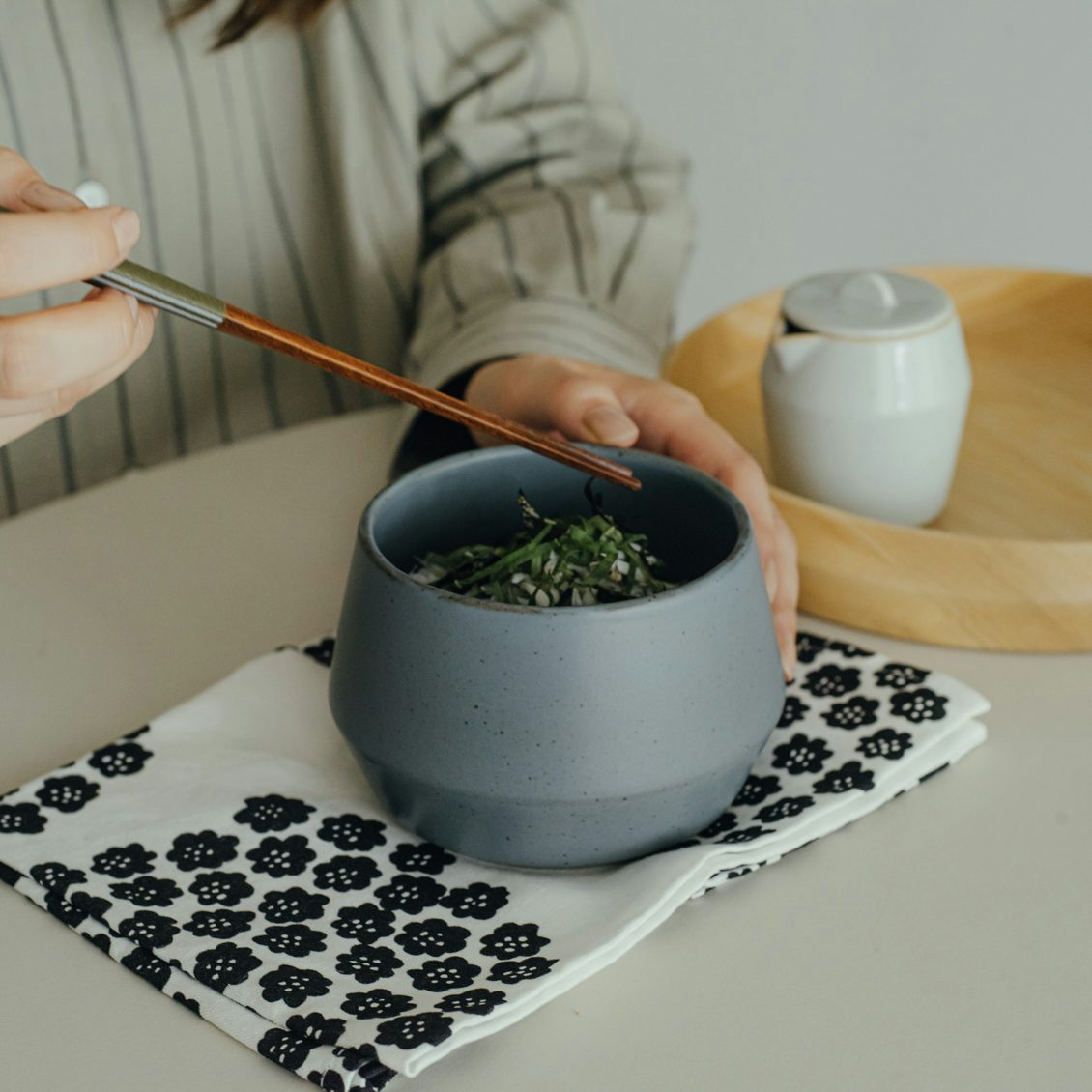 「ブルーグレー」は、落ち着きのあるくすみカラー。マットな釉薬を使用し、土のあたたかみを感じる風合いに仕上げました。