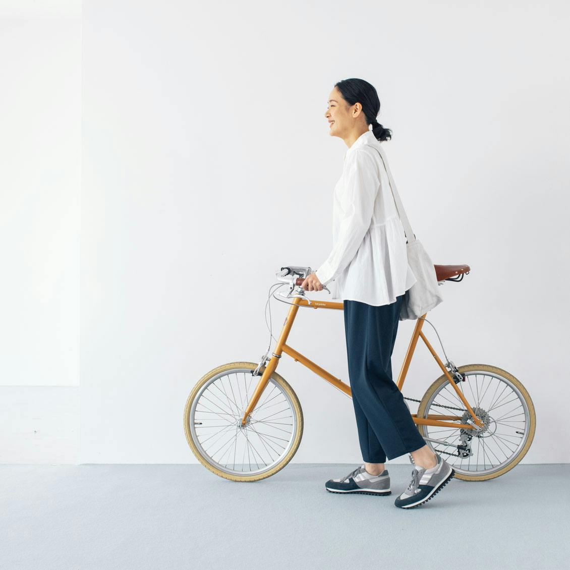 よく伸縮して、シルエットもスッキリしているから、自転車に乗る時にもぜひ。