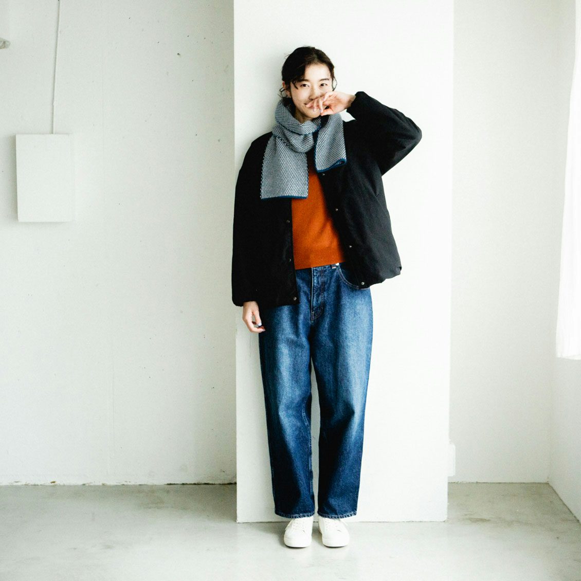 例えば「デニムにニット」といった定番の組み合わせも、こんな風に新鮮に。