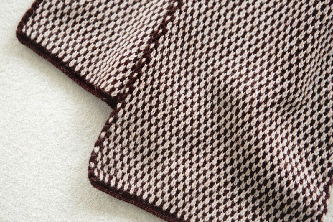 手仕事の「ジャガード編み」によって丁寧に表現された柄は、ニットながら織物のような繊細さも感じられます。
