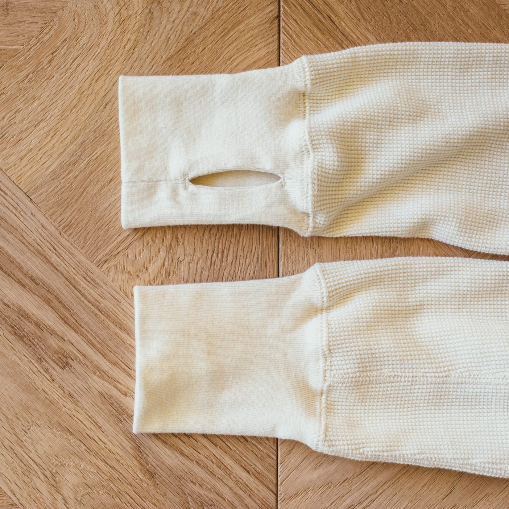 生地の凸凹が体温を含んで空気の層を作ってくれるので、保温性が高く、あたたかいのも嬉しいポイント。