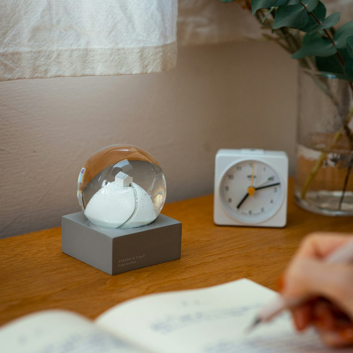 手のひらサイズのスノードームは、ツリーが置けないわずかなスペースにもフィット。