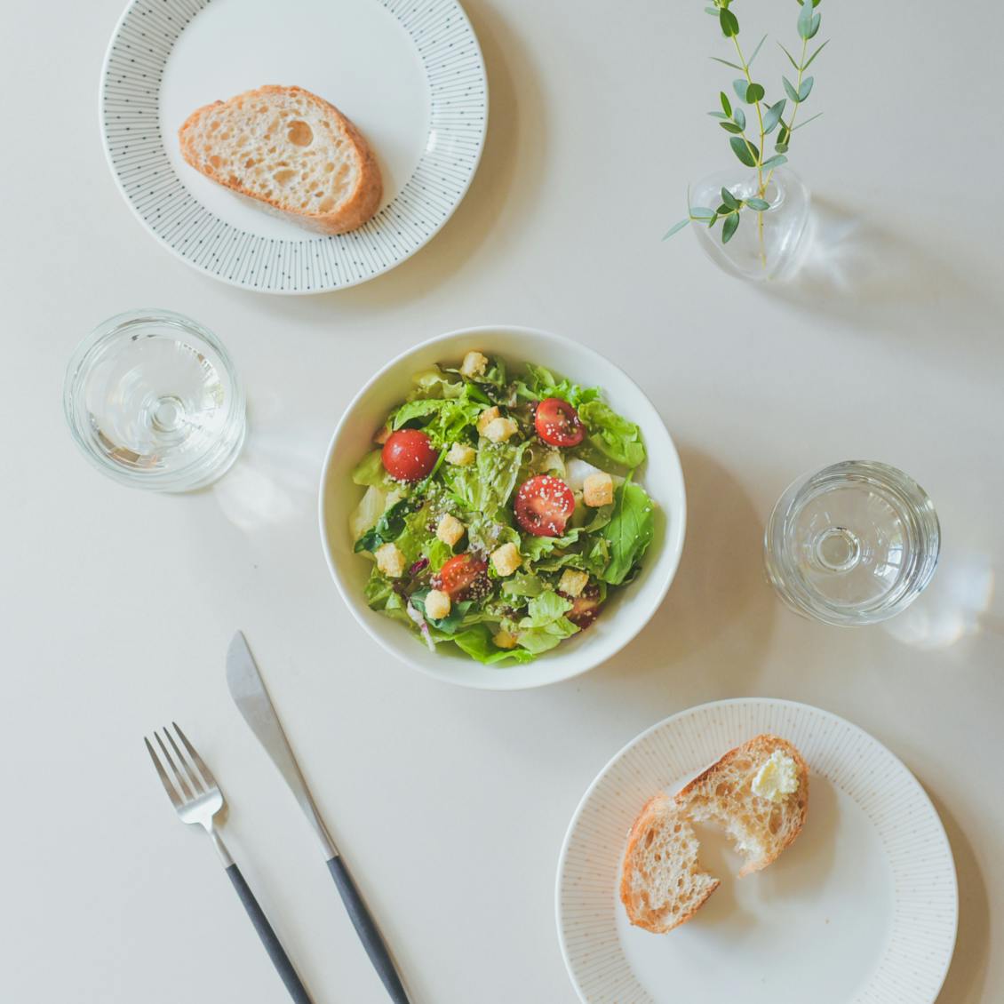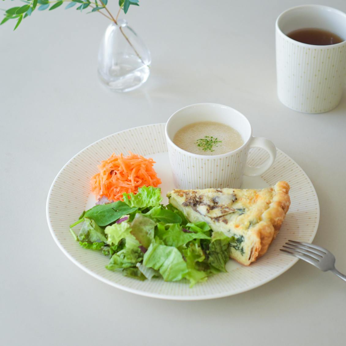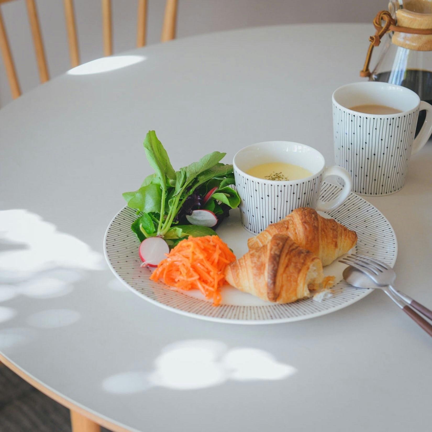 ボウルやカップにスープを入れて組み合わせると、ブランチにもぴったりのワンプレートになります。