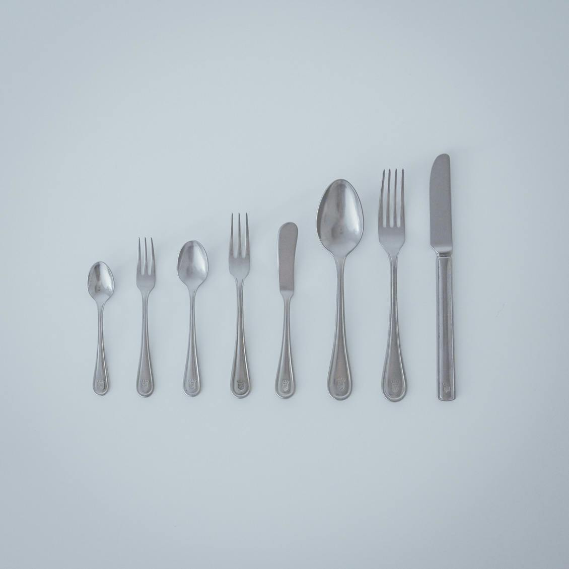 もっと小ぶりなコーヒースプーンや、ケーキ用のフォーク、バターナイフまで、大きさは全部で8種類。