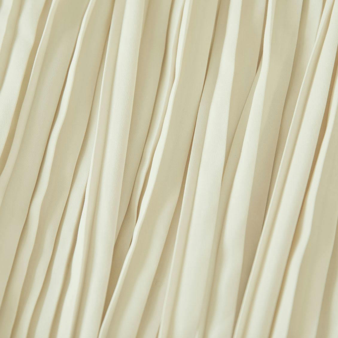 大人にも安心感のある、ほんのりとちょうどいい甘さが漂う秘密は、裾に向かって消える「消しプリーツ」。