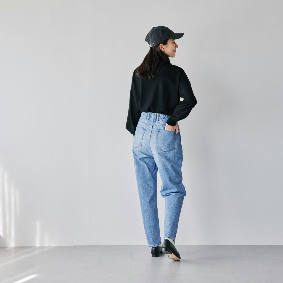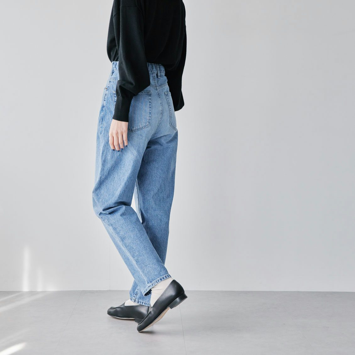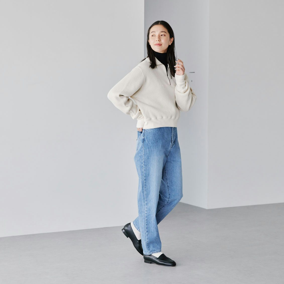 カジュアルなトップスとの合わせもラフになりすぎないのは、上品さや安心感を追求したこのデニムならではです。