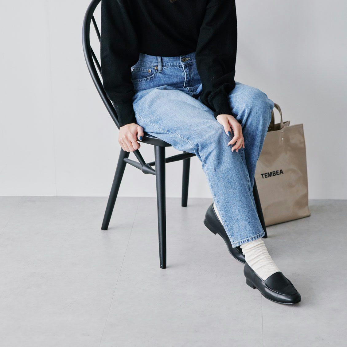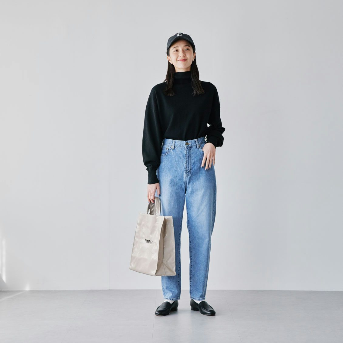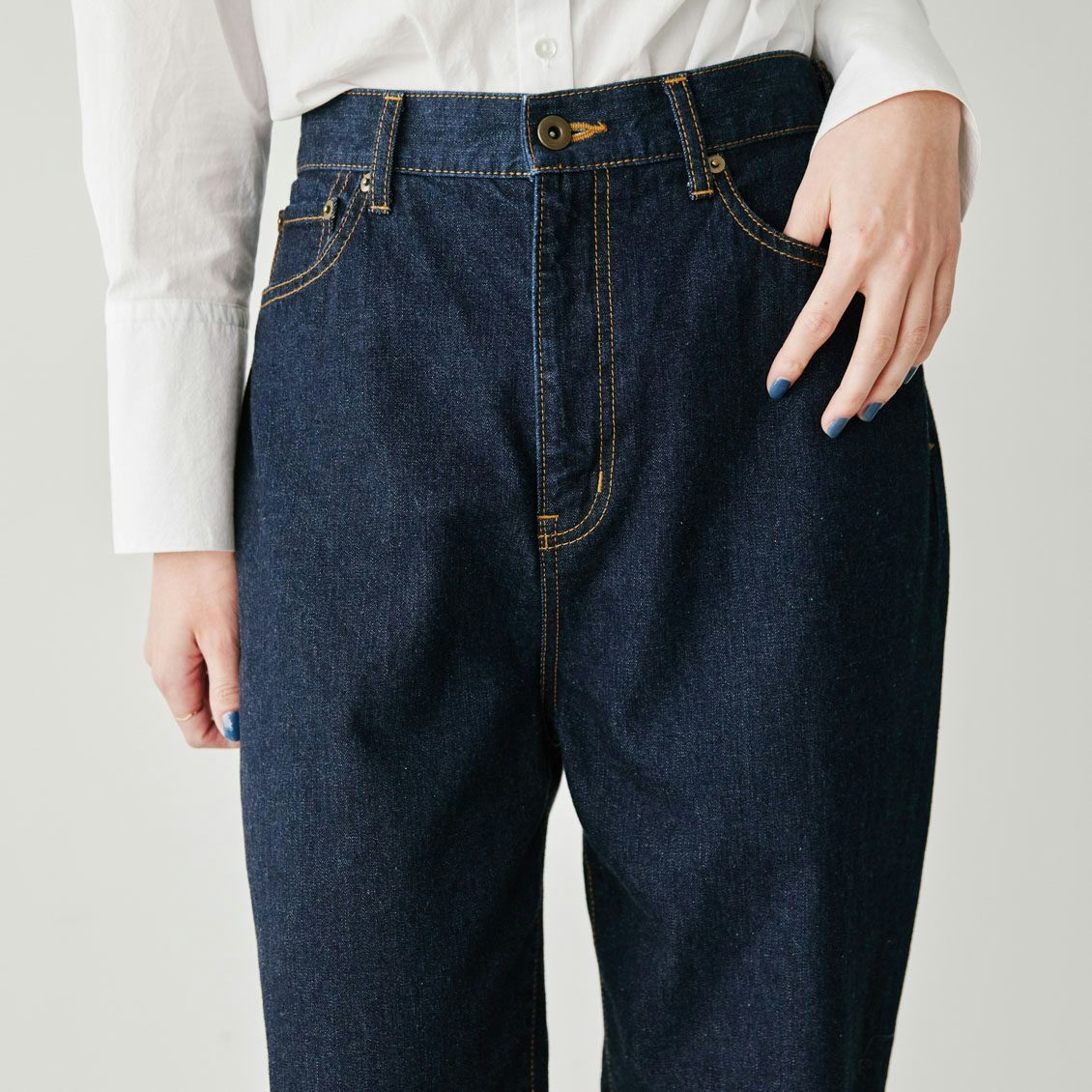 カジュアルなトップスとの合わせもラフになりすぎないのは、上品さや安心感を追求したこのデニムならではです。