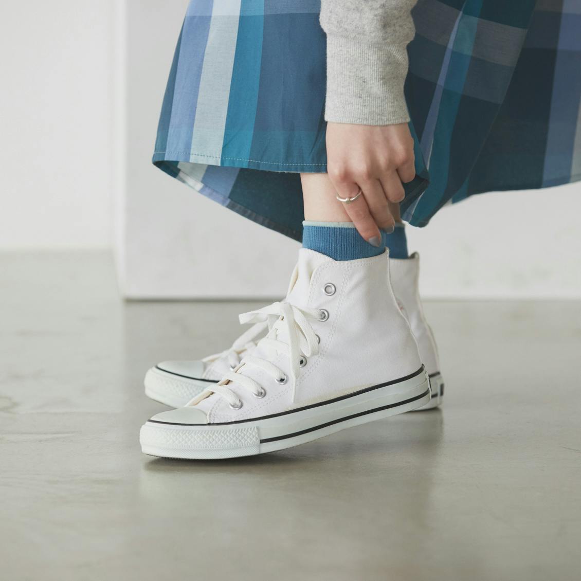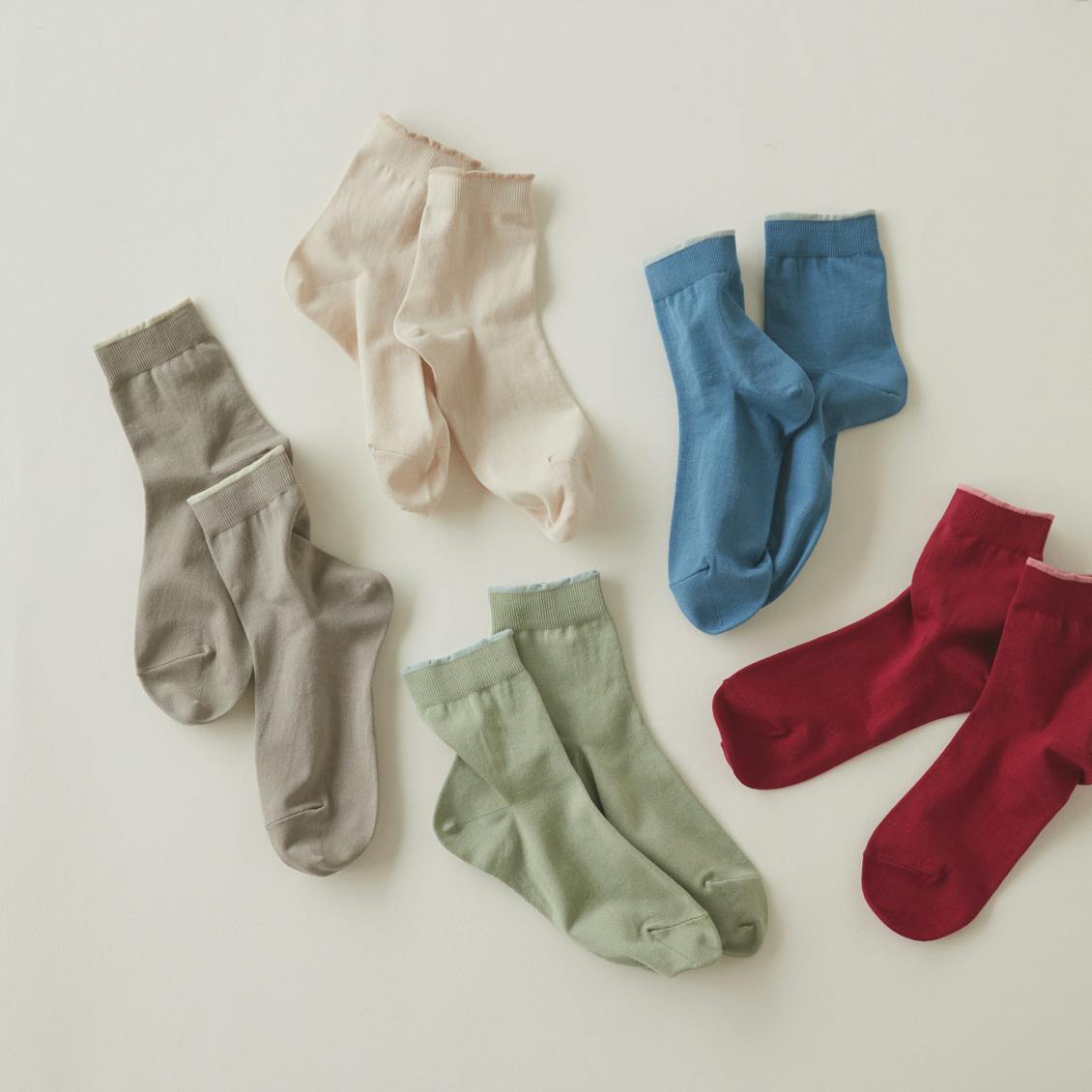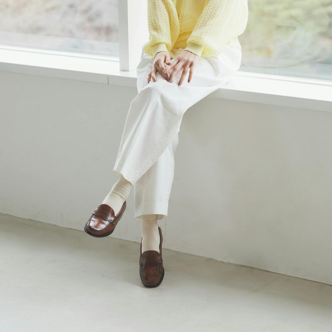 ボトムスの裾から覗くわずか15cmほどの隙間を彩り、上品さをプラスしてくれるニュアンスカラーをご紹介します。