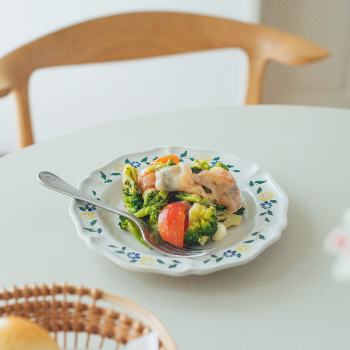 形も絵柄も、とっても愛らしいプレートだから、盛り付けるときからうきうきが止まりません。
