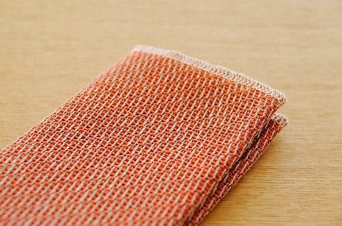 最初はノリがきいていますが、使う前に洗いをかければ、繊維がふくらんで網目が細かくなり、クッタリして使いやすくなります。