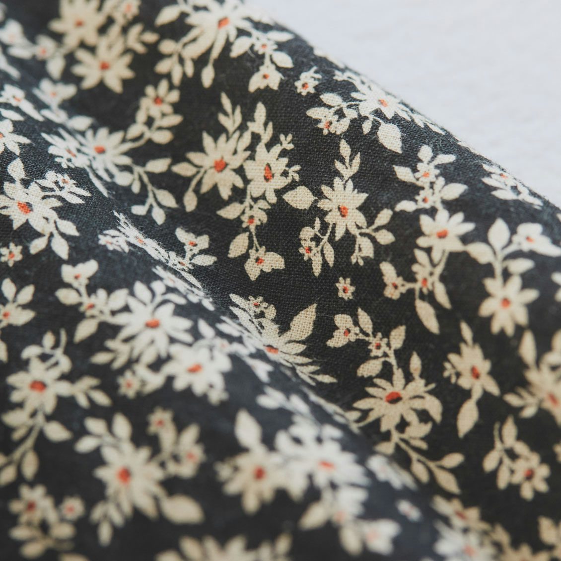 蚤の市で見つけたような、ちょっぴりノスタルジックな小花柄。それでいて落ち着いたモノトーンだから、品よく甘すぎない。