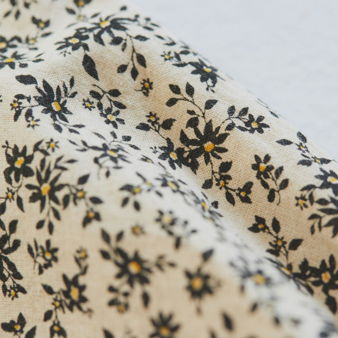 キナリ地に、ブラックの花柄の組み合わせ。花の中心には、さりげなくイエローがあしらわれています。