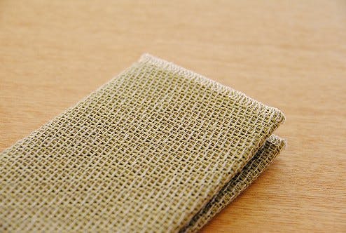 最初はノリがきいていますが、使う前に洗いをかければ、繊維がふくらんで網目が細かくなり、クッタリして使いやすくなります。