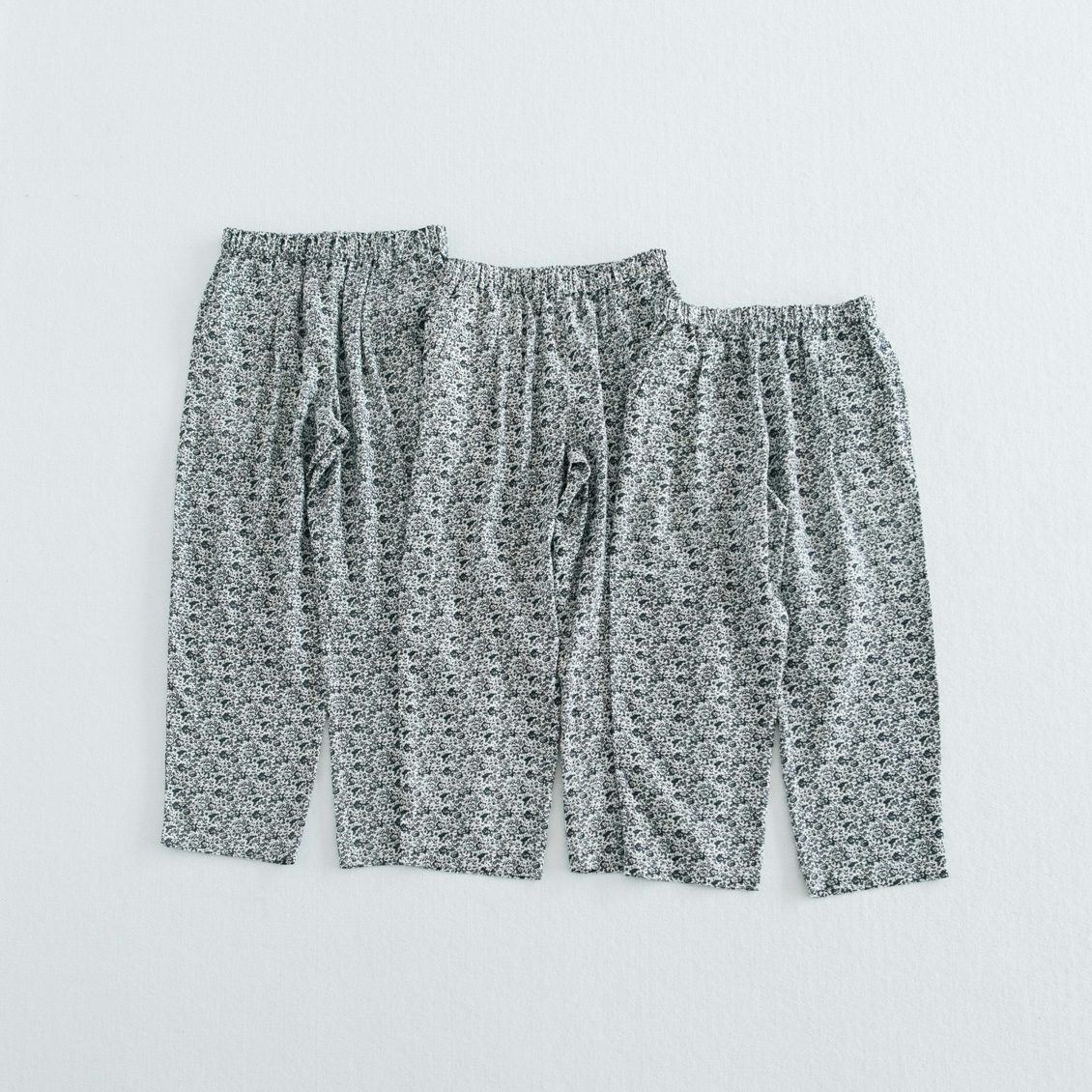 こちらの特集では、3名のスタッフがリバティプリントのイージーパンツをはいてみました。