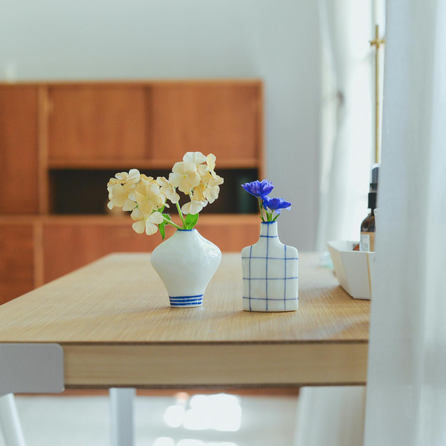 生けるお花や気分に合わせて、テーブルの上や枕元、棚のちょっとしたスペースなどお部屋の様々な場所で飾ってみてくださいね。