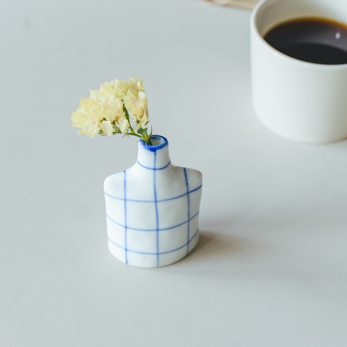 このページでは、「小さな花びん(チェック・ボーダー)」柄の花びんをご紹介します。