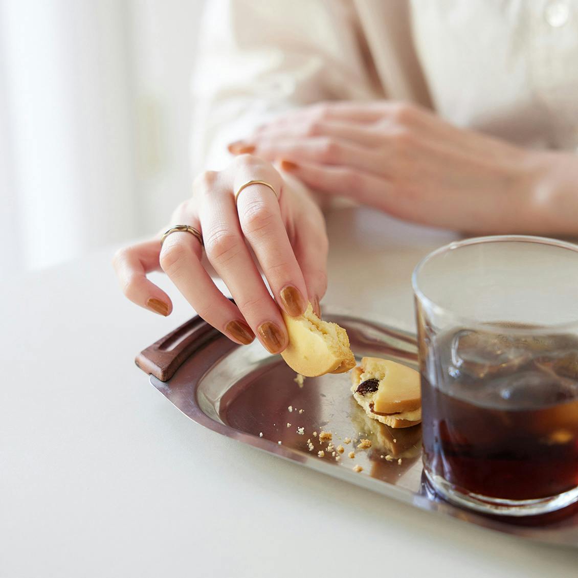2度塗りだと透け感はそのままに、色味が深まることでシックな大人の指先に。