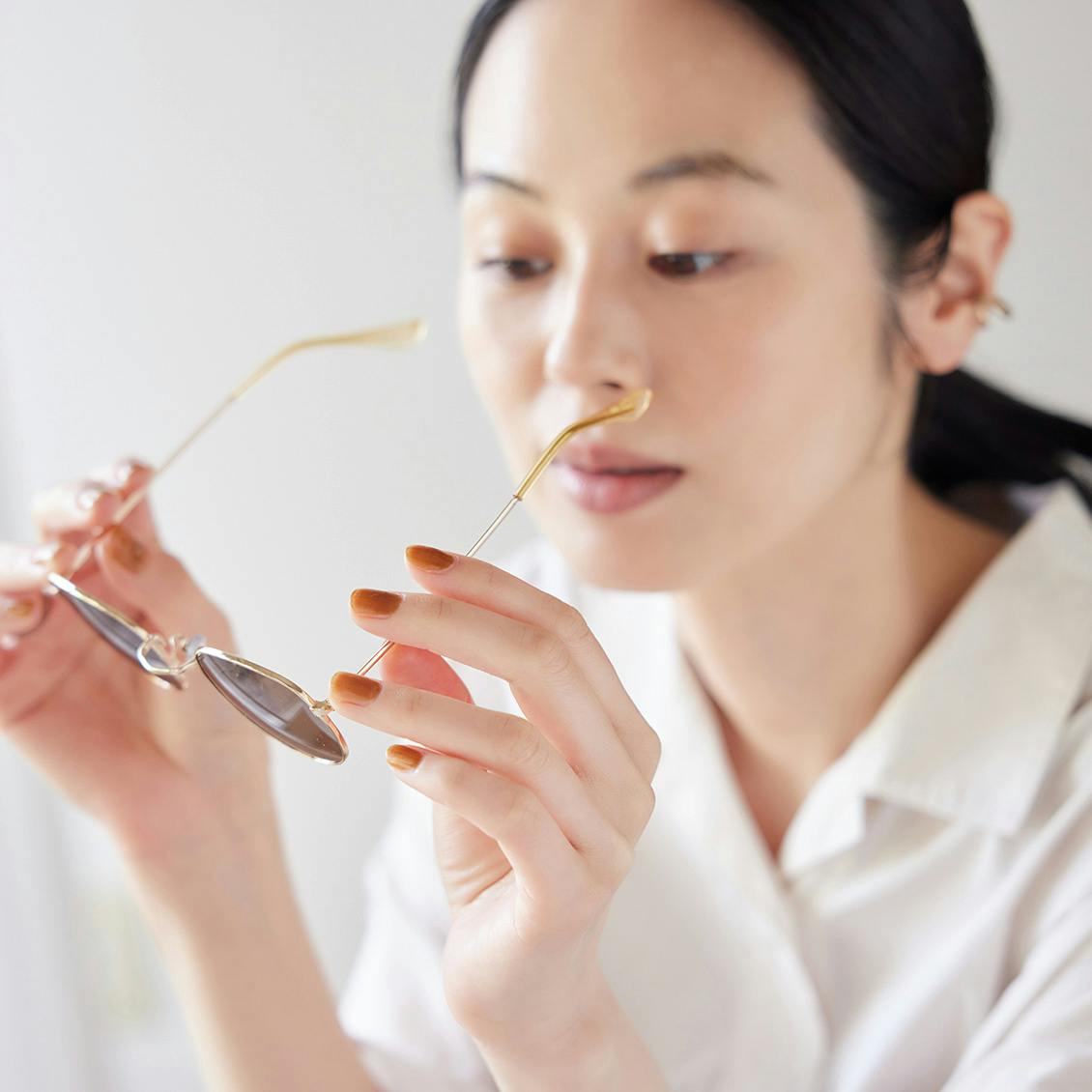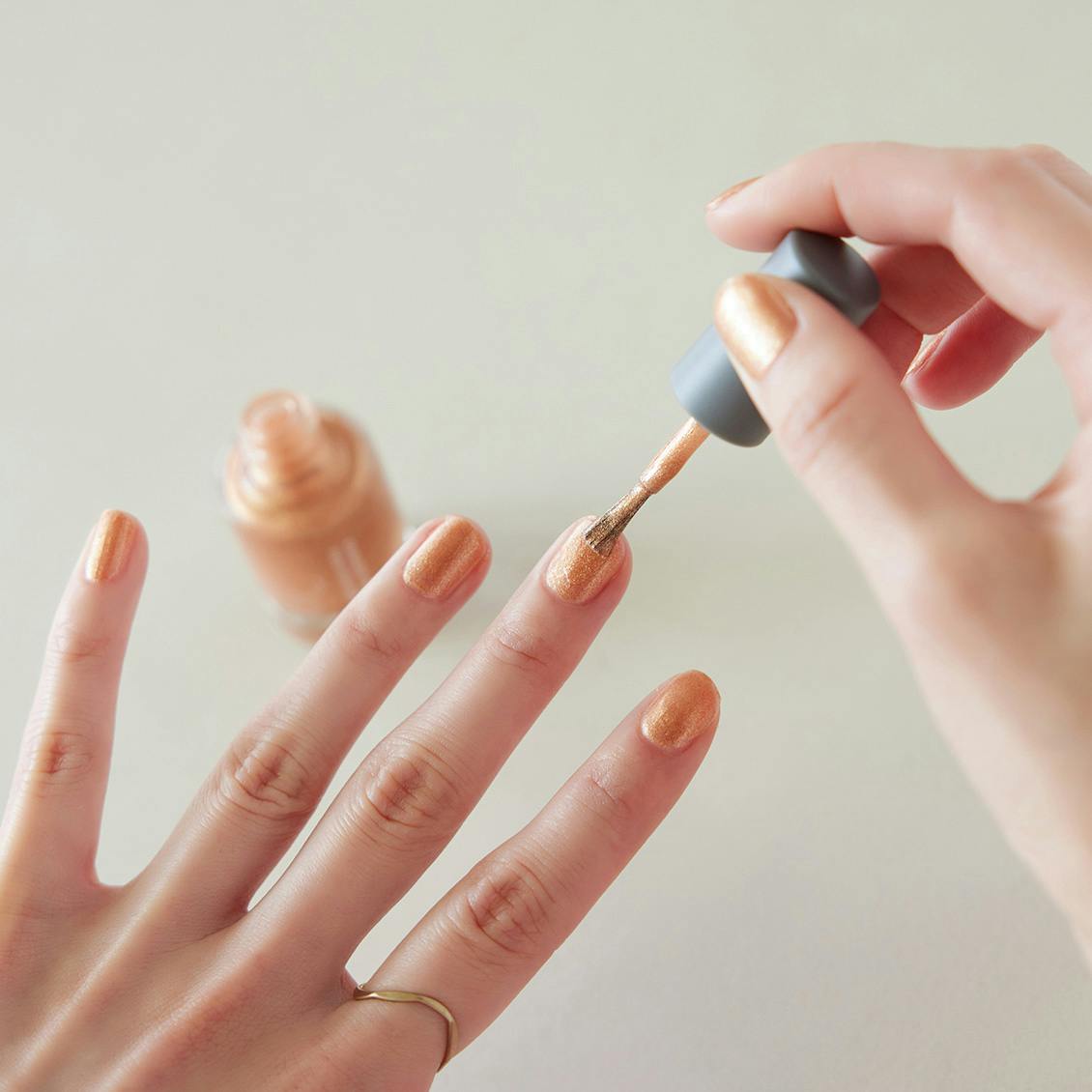 極小の偏光ゴールドパールがさりげなくきらめき、成熟した指先に。