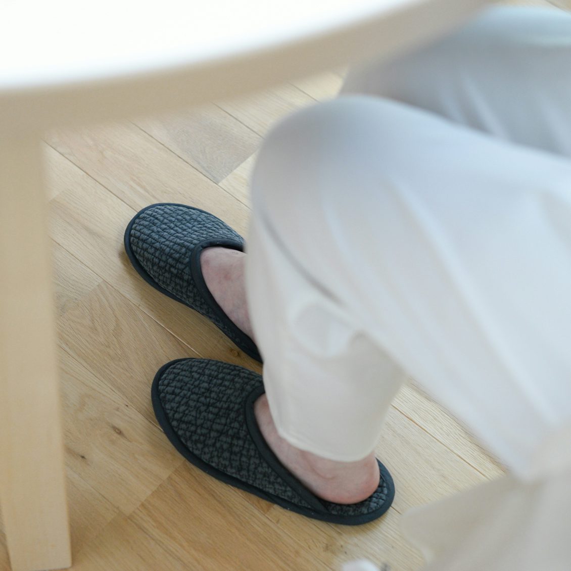 このスリッパの一番の魅力は、素足で履いたときの気持ちよさ。