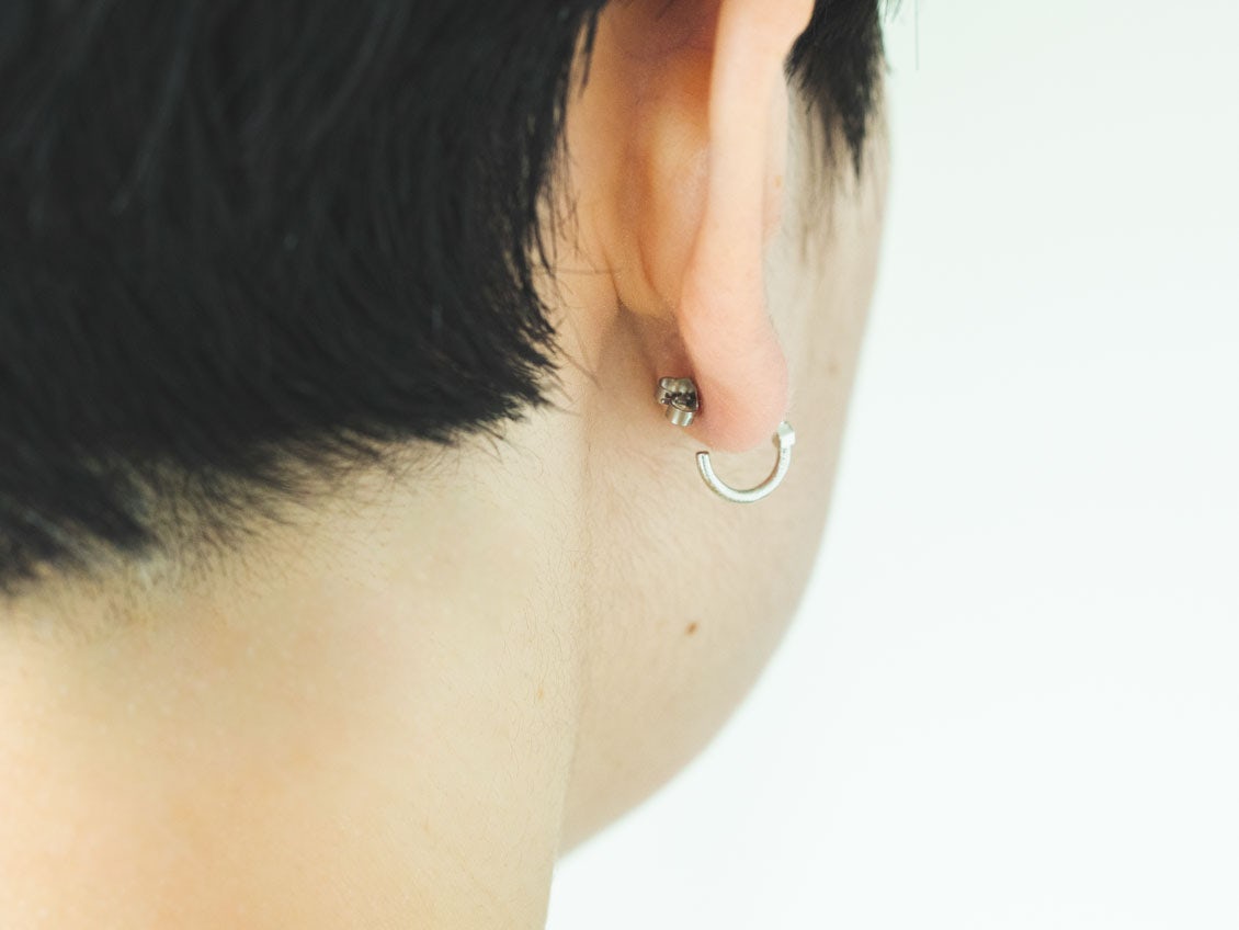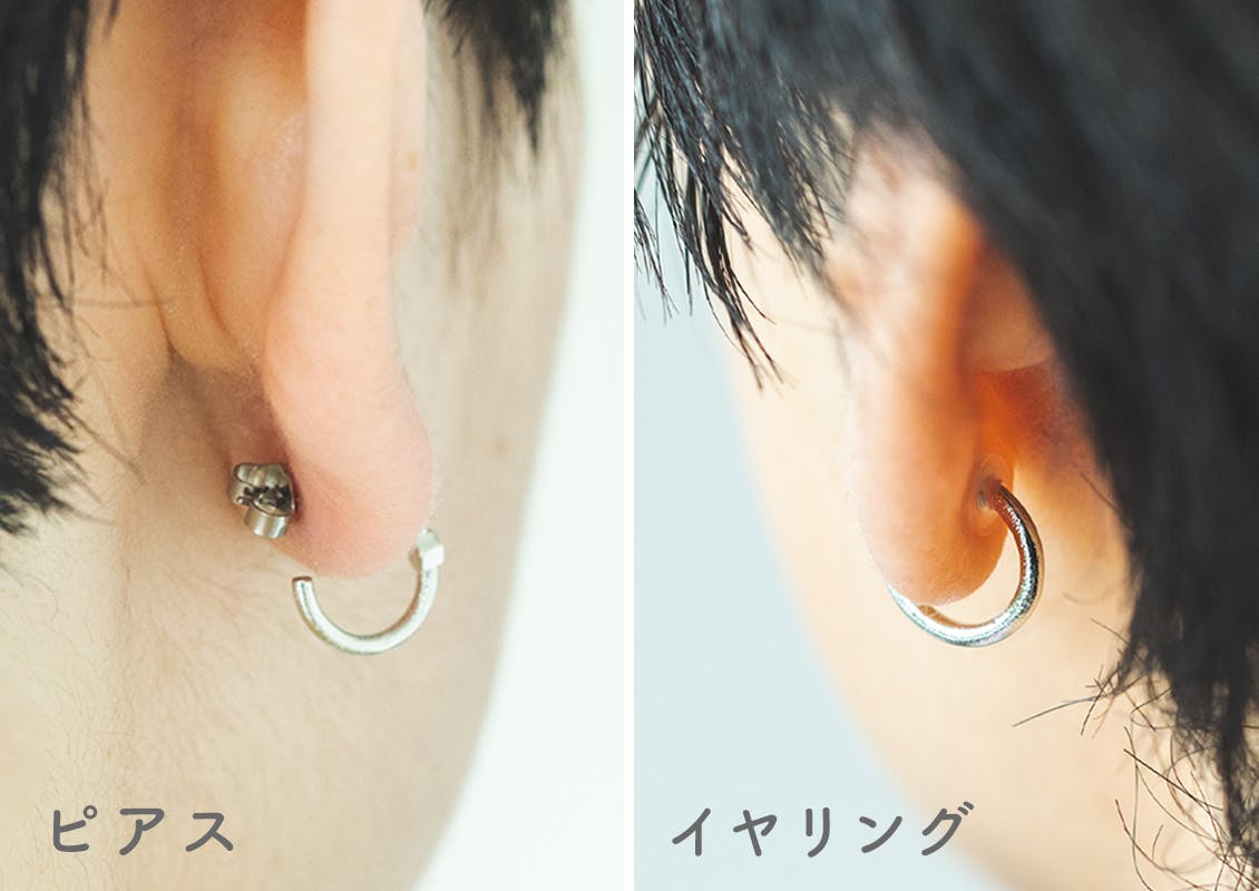 ピアスは、リングが耳の裏側まで届かず、途中で切れるデザインになっています(上写真)。