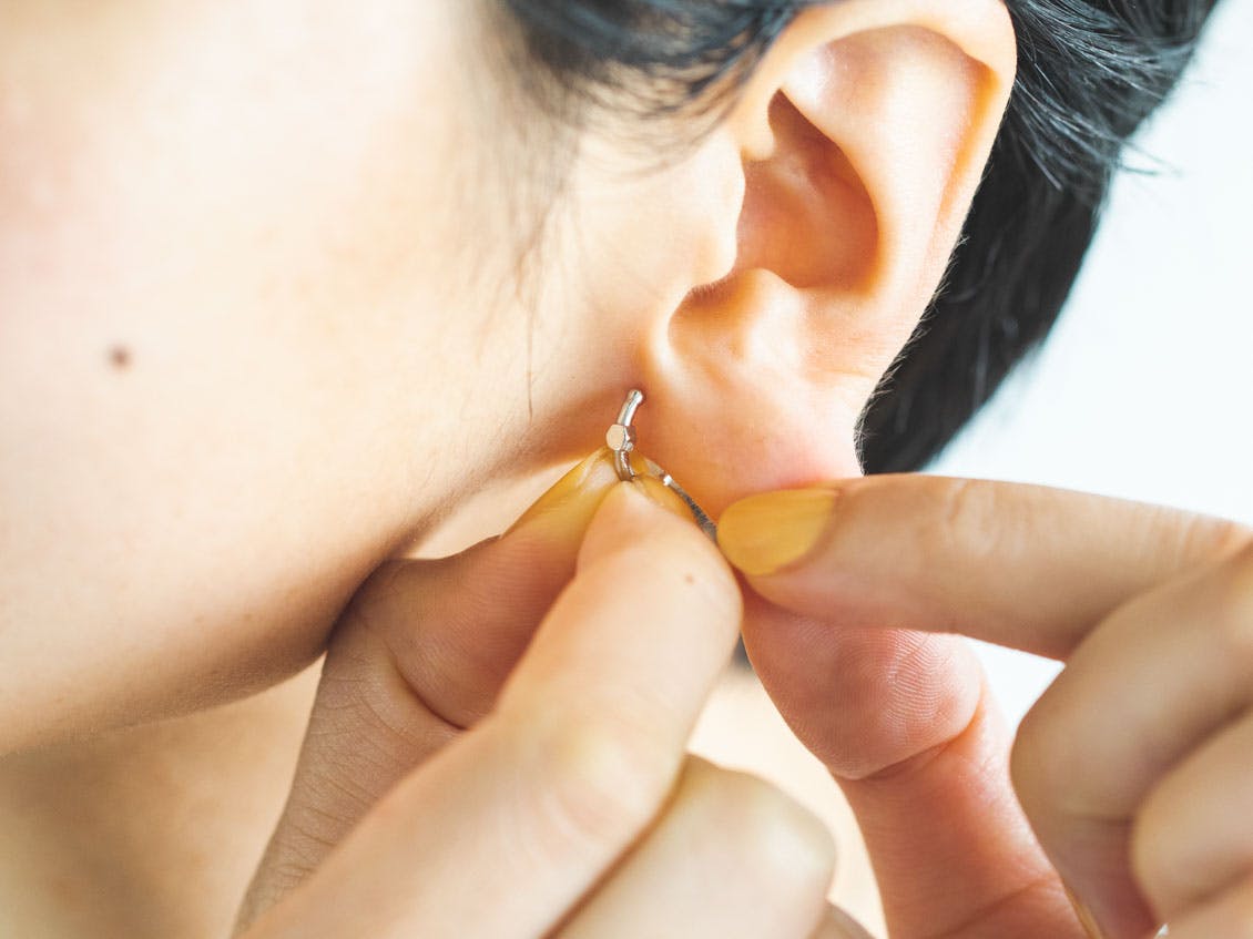 外す際も耳たぶをひっぱり、イヤリングを耳たぶの付け根までスライドさせてから取ると、痛みなく取り外しやすいです。