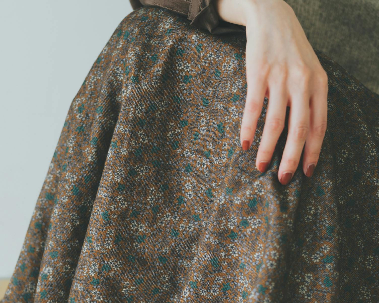 そんなSOILから、秋冬気分たっぷりの、花柄コーデュロイスカートが届きました!