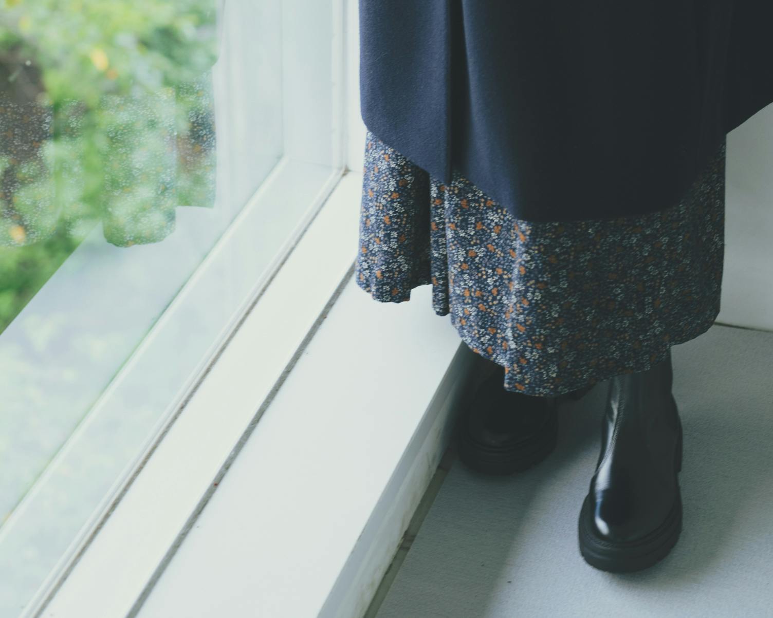 秋冬にまとう花柄はどこか新鮮で。寒い季節のとっておきの1着になってくれそうです。