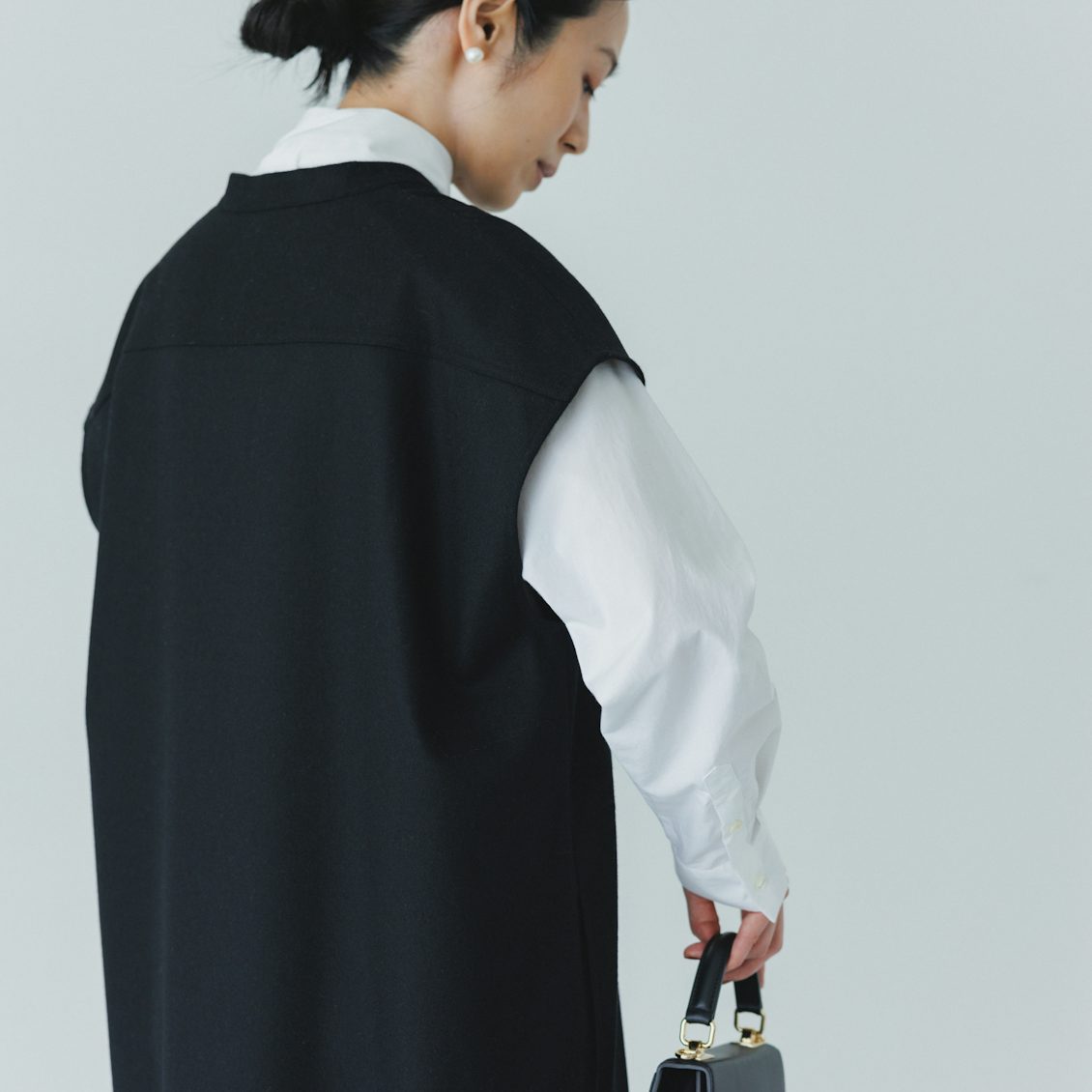 一見するとシンプルだけど、シルエット・生地・ディテールすべてに気が利いていて。着てみるとよりその良さを実感できる一着です。