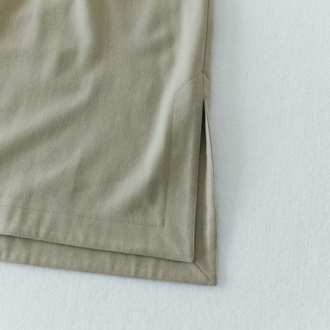 その分裾の折り返しを広めに取ることで、程よい落ち感が生まれています。