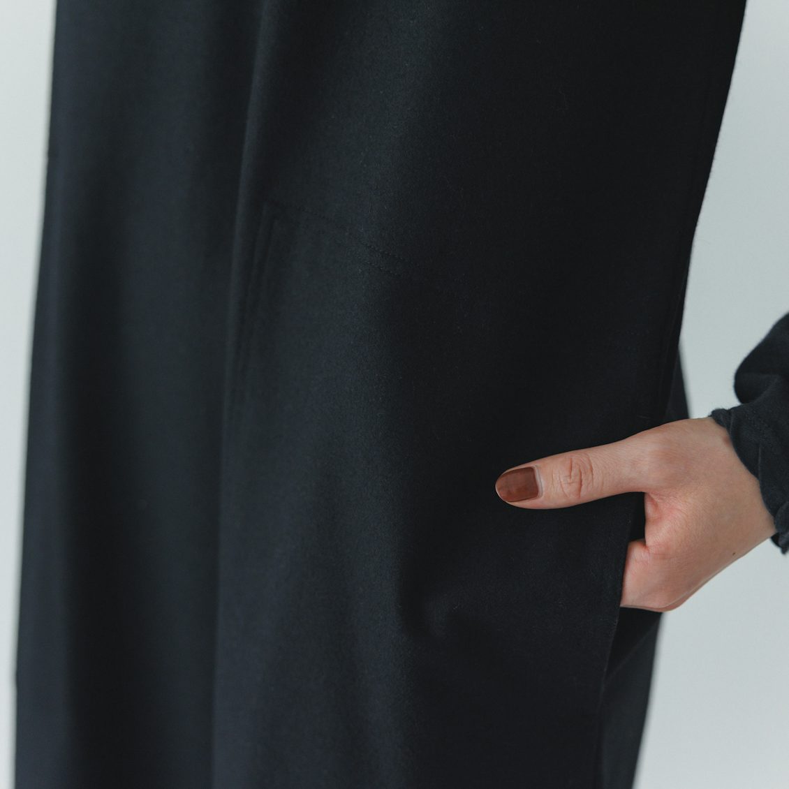ラインを拾わず、かといって体が大きく見えない生地感も絶妙です。