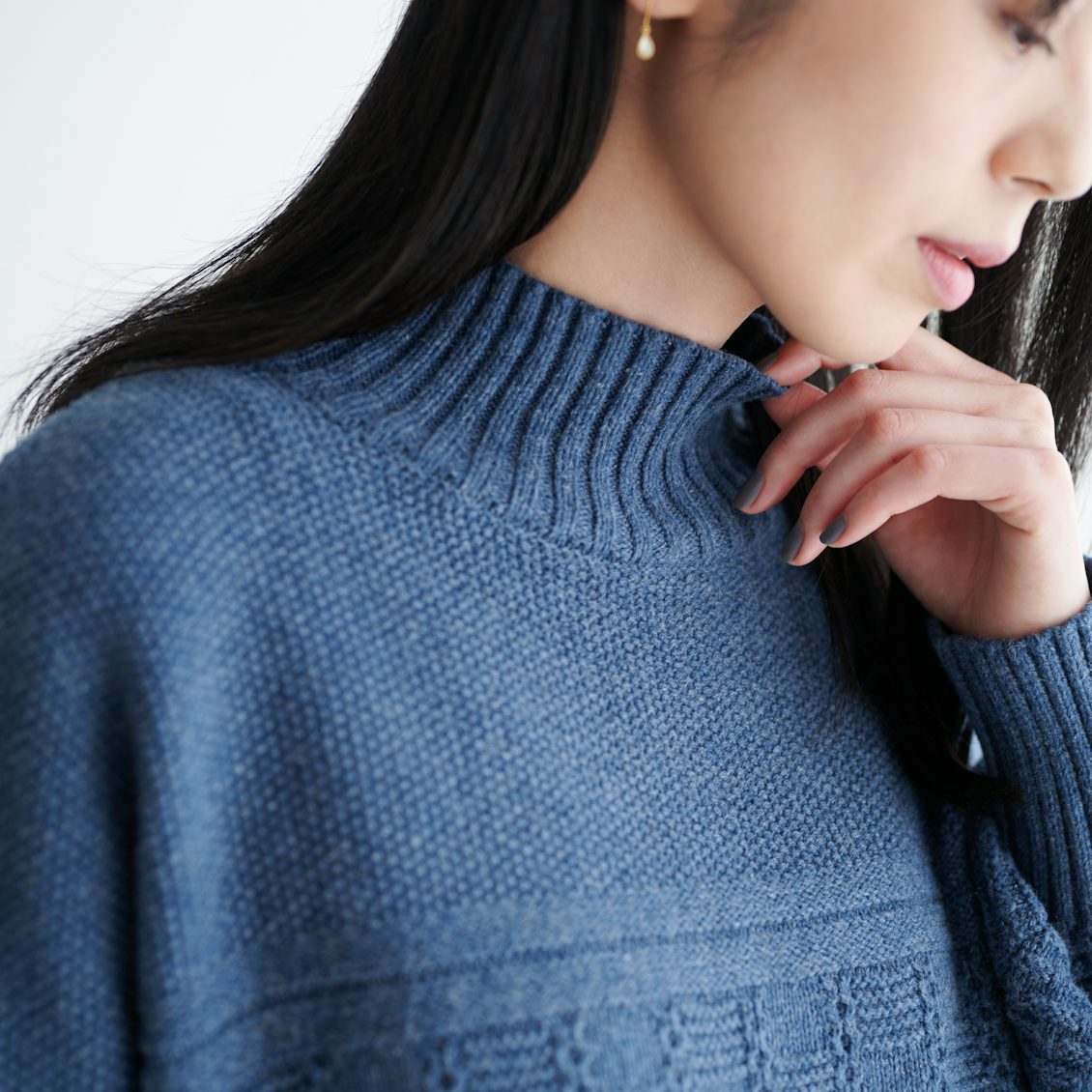 よくよく見ると、複数のブルーが混ざった杢調になっていて、奥行きのある色合いに感じられます。