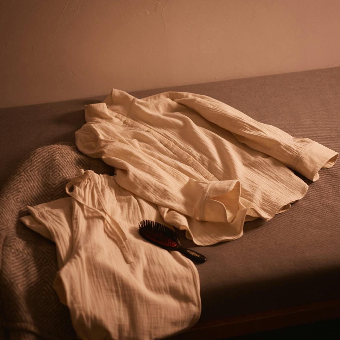 「夜じかんをご褒美に」襟元にこだわったダブルガーゼパジャマ