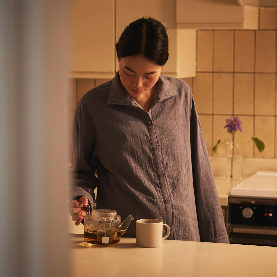 パジャマに袖を通すと、日中の "がんばるモード" を自然とオフにしてくれる気がします。
