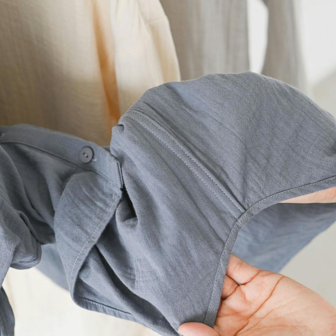 その時の気候、体調、気持ちに寄り添うように変化できるところが、このパジャマの一番のポイントです。