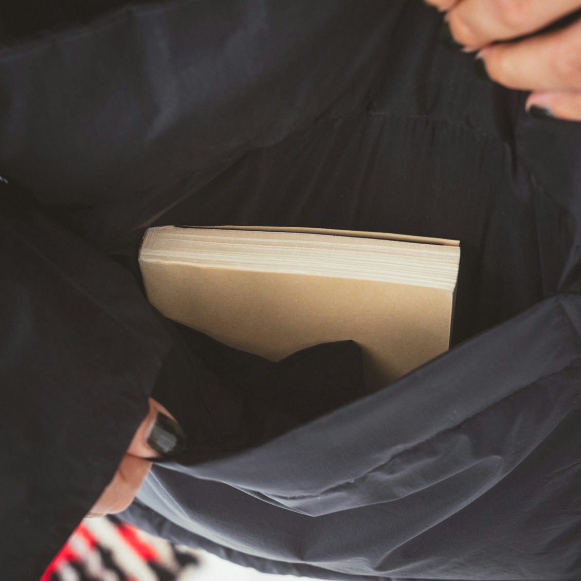 厚手の文庫本もすっぽり入るサイズ感ですが、中には仕切りがある2層構造なので、財布や携帯電話など必要なものがさっと取り出せます。