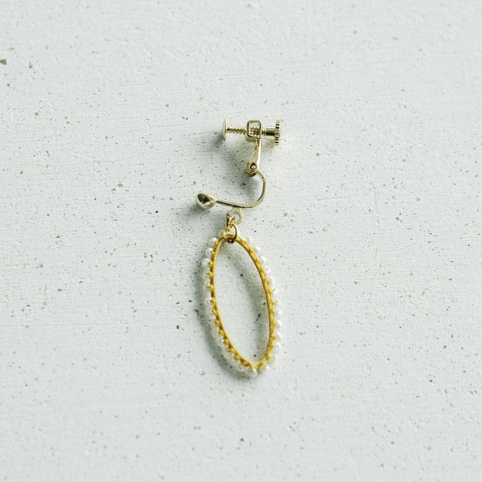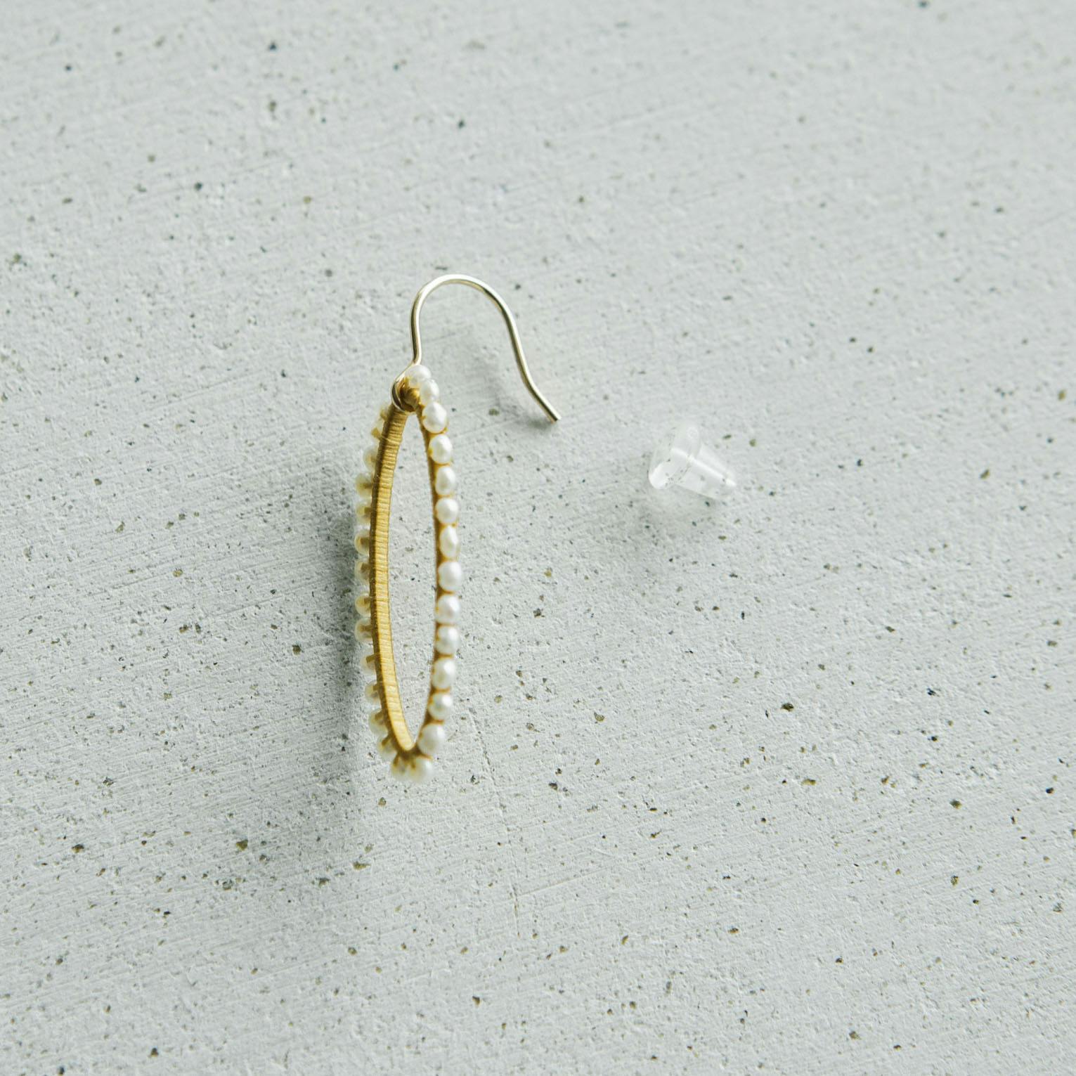 楕円の形に結び留められた、小さくやわらかく輝くパールは、触れるとしゅんと溶けてしまう繊細な雪のよう。
