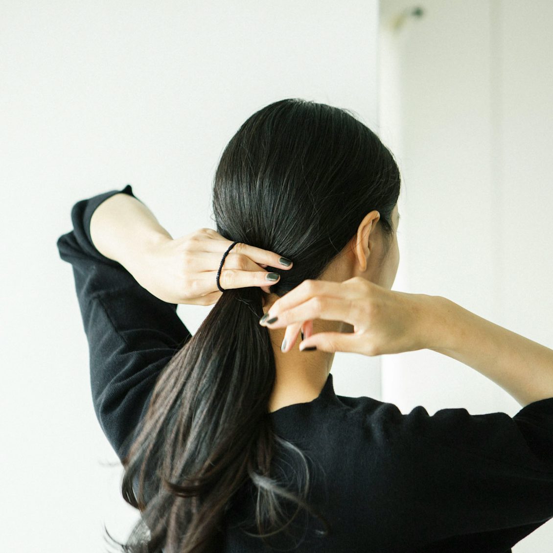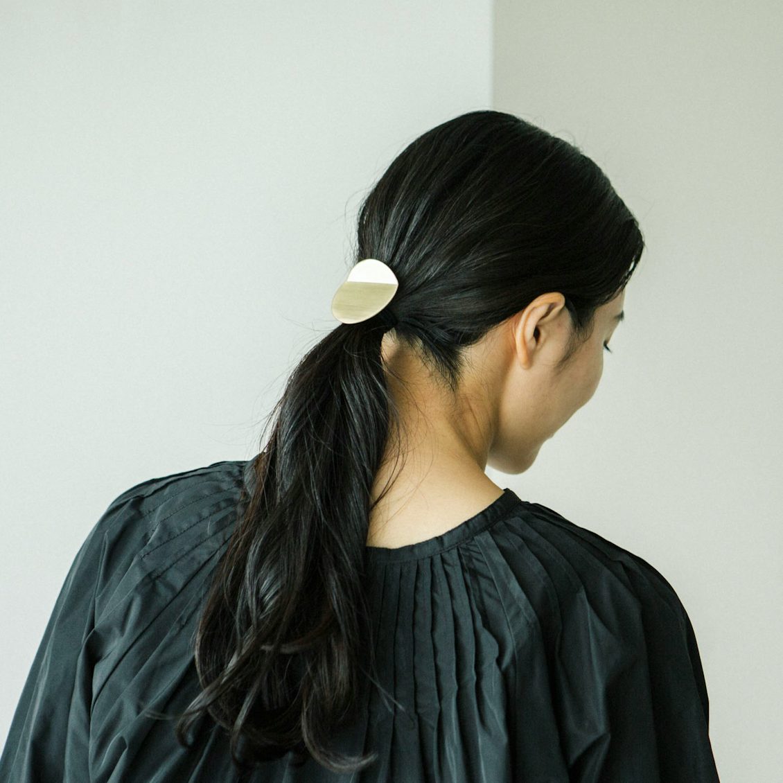 手軽に髪をまとめた後ろ姿が、ヘアカフひとつでぐっと素敵に。